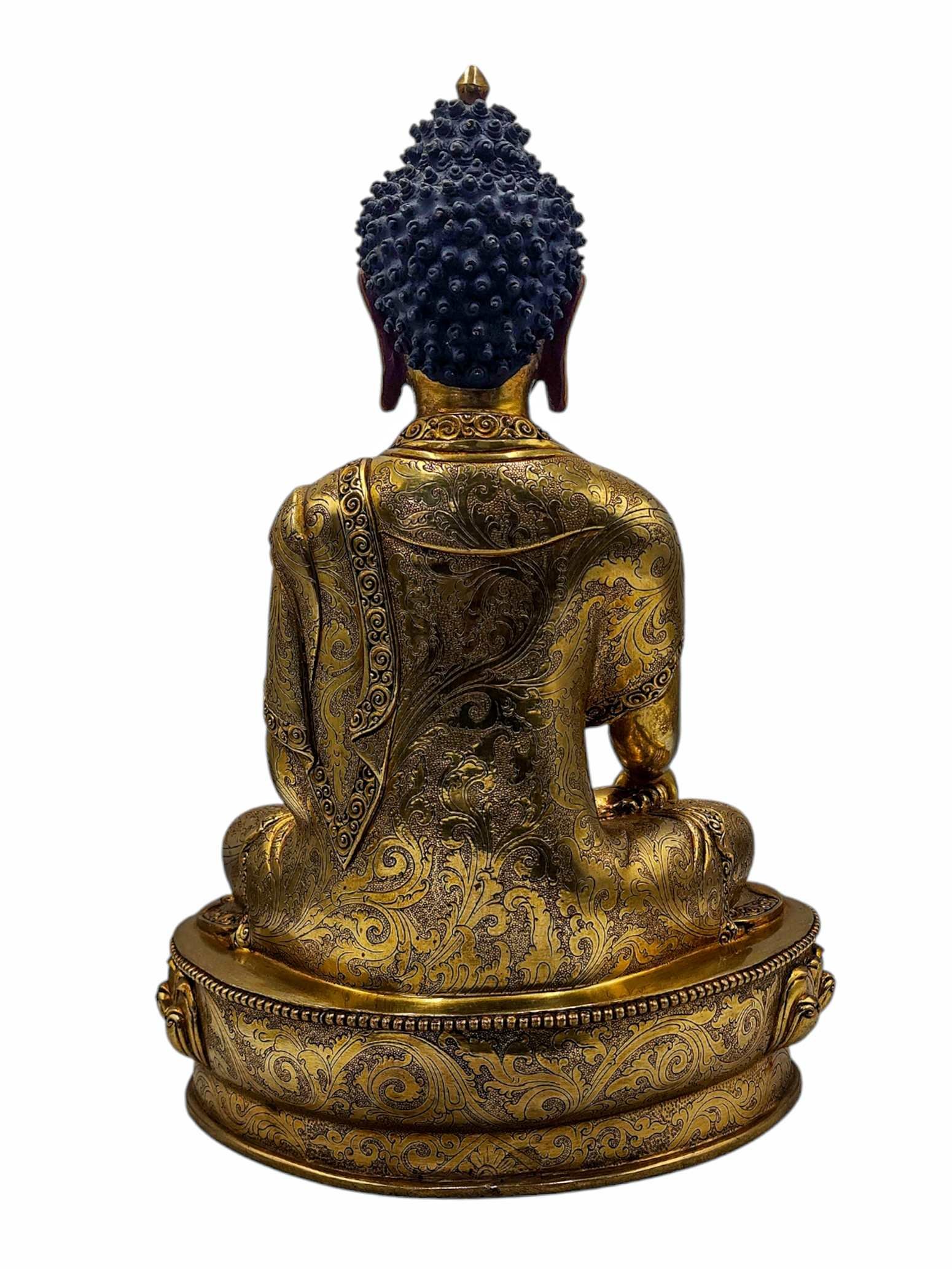This Shakyamuni Buddha is finished with full gold plating. also known as mercury gold plating or fire gold plating. This traditional technique involves the application of a genuine layer of gold onto the Shakyamuni Buddha. Referred to as mercury gold plating, it is considered the correct and authentic form of gold plating in Nepal. Despite being more expensive than electroplating, this traditional mercury gold plating is gaining popularity again in Nepal. People are drawn to its authenticity, longevity, and the unmatched beauty it brings to the Shakyamuni Buddha. The resurgence of interest in this traditional form of gold plating reflects a growing appreciation for the craftsmanship and cultural heritage of Nepal Read More