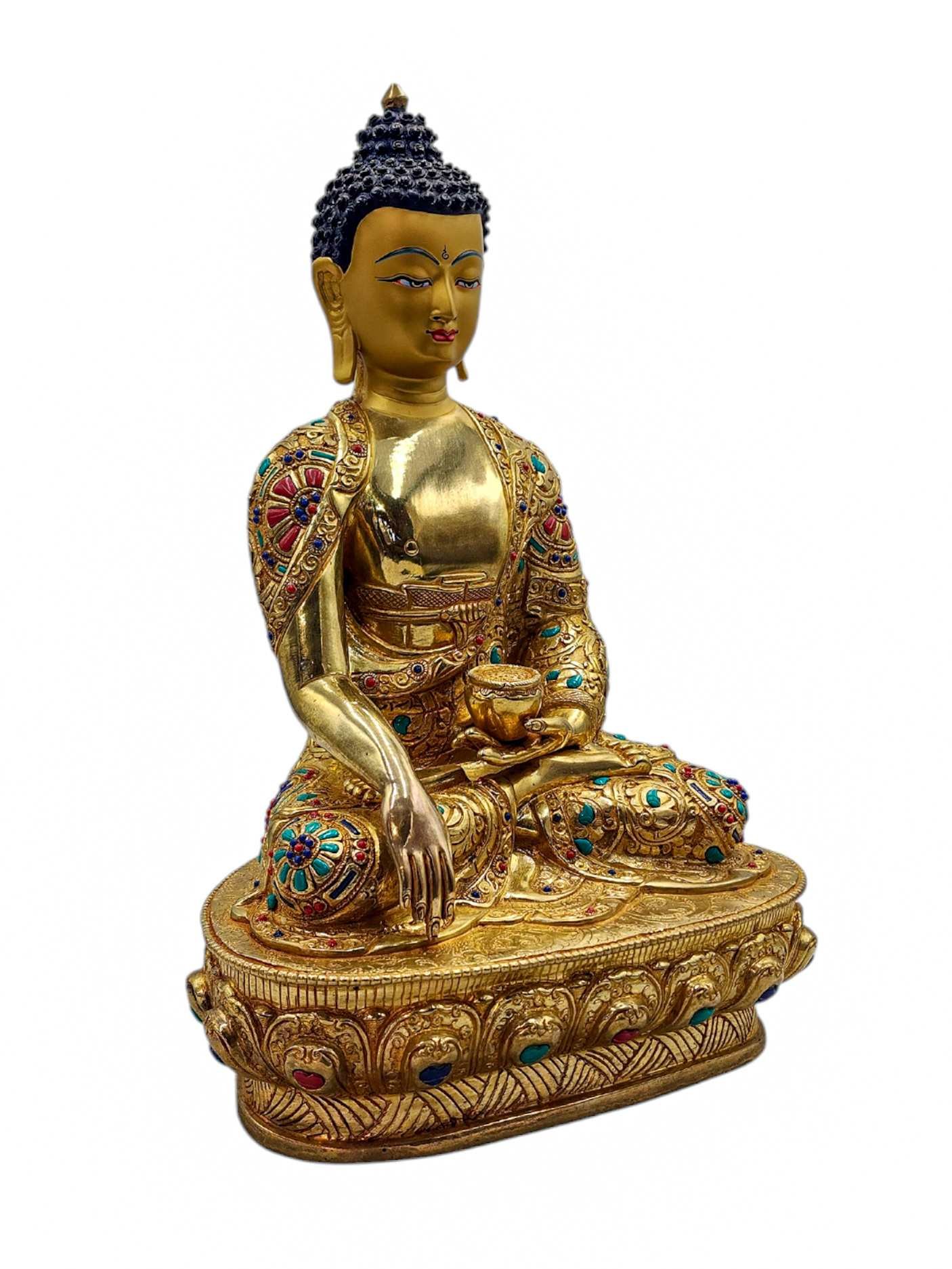 Shakyamuni Buddha, Buddhist Handmade Statue, Full Gold Plated, Face Painted, Stone Setting and High Quality , The Enlightened One and Teacher of Humanity