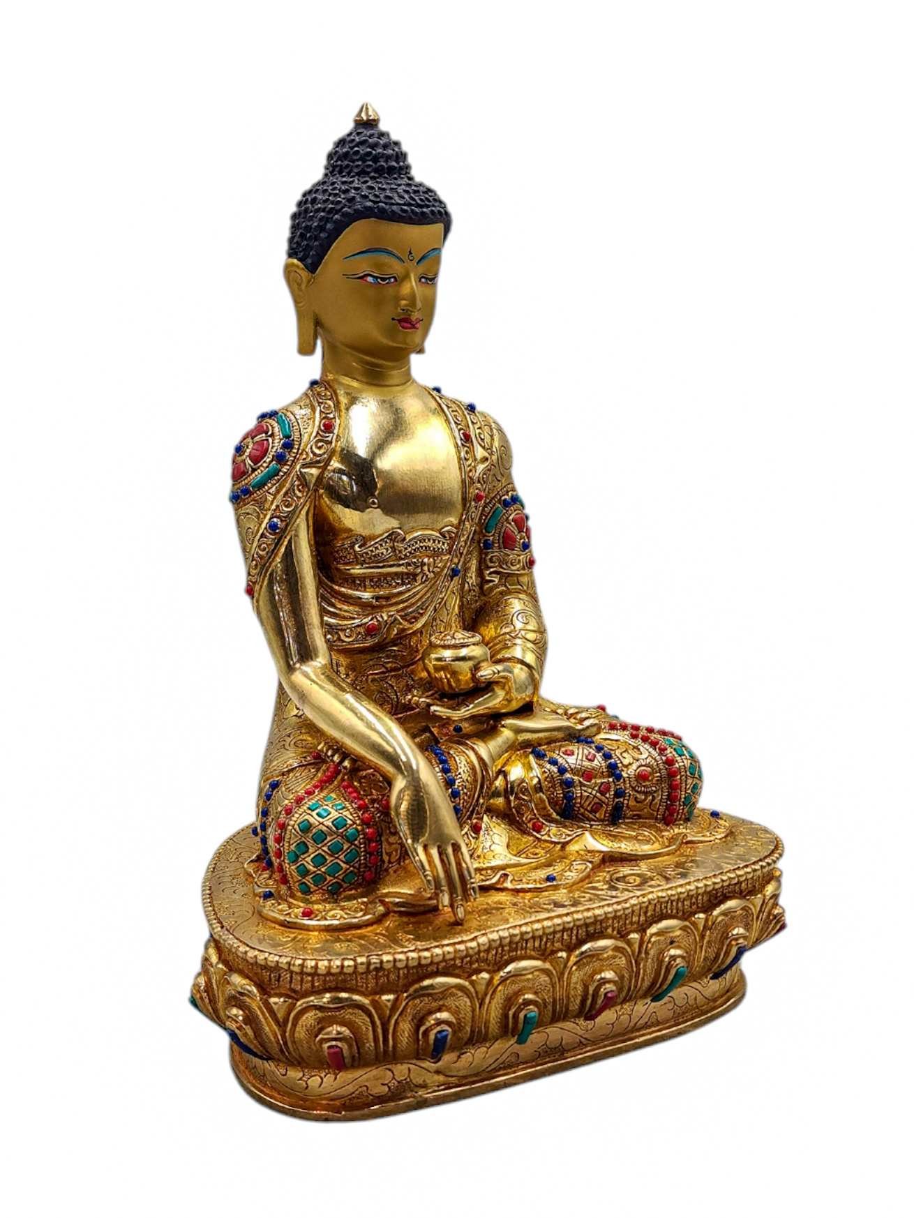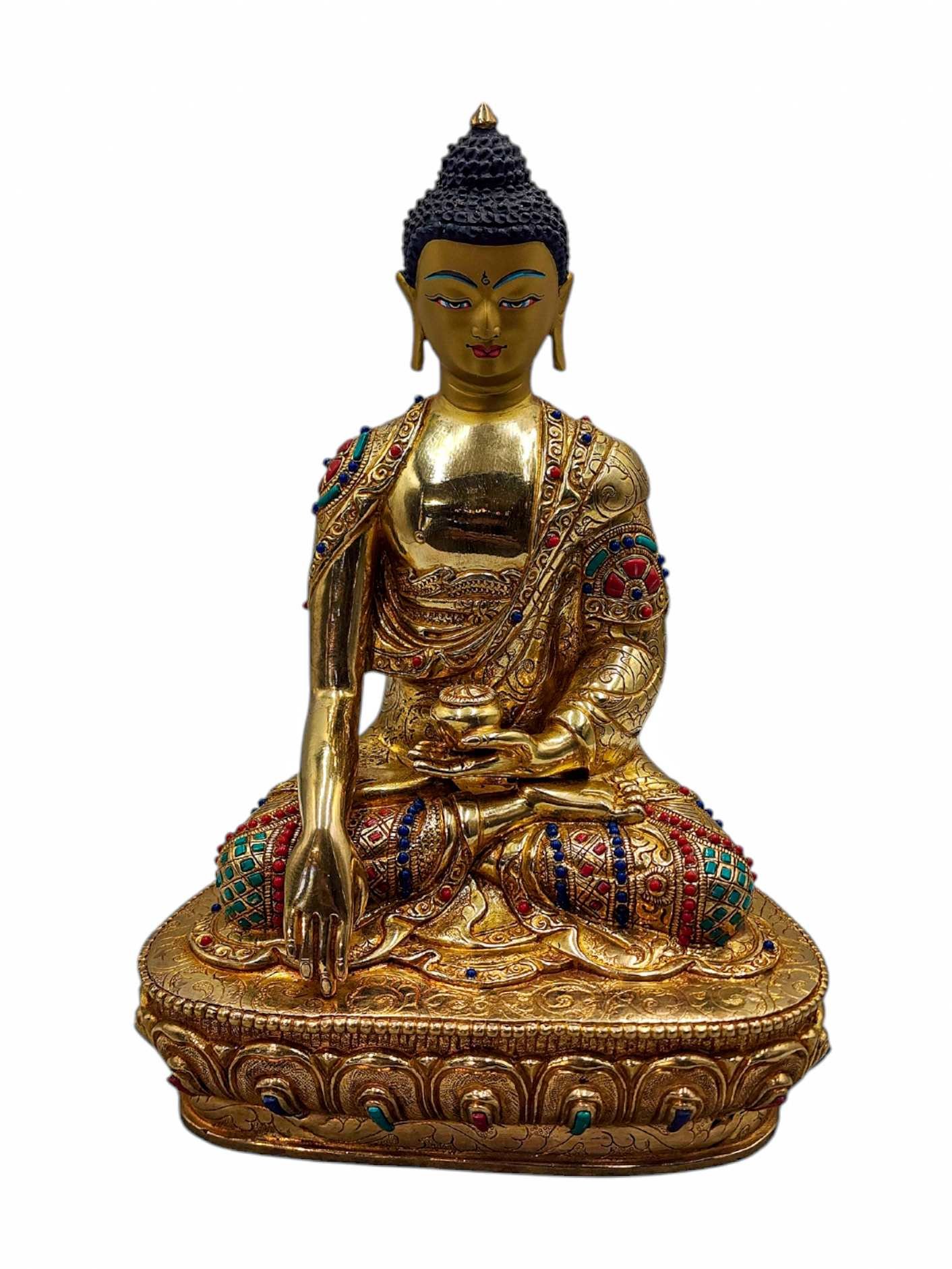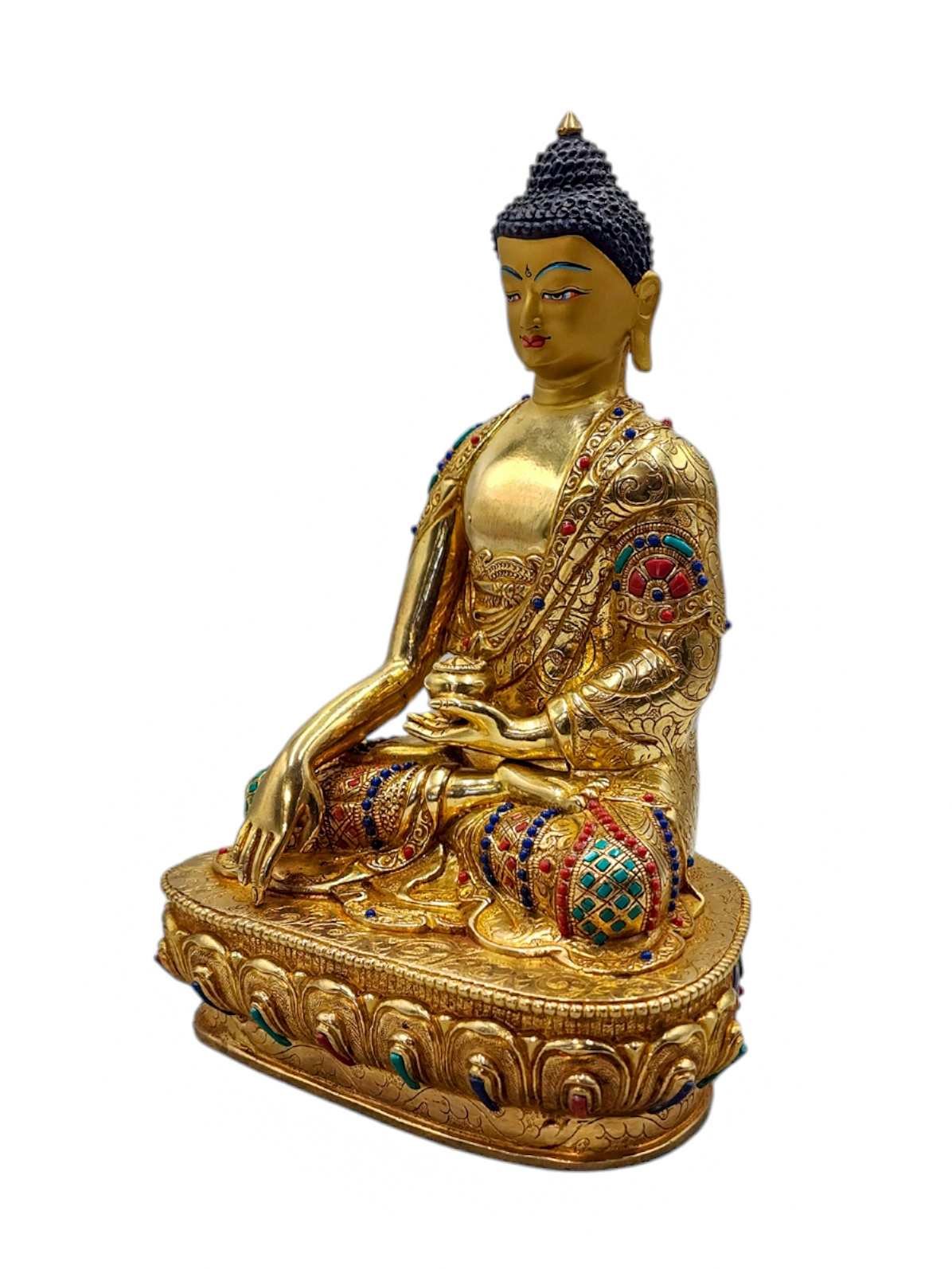 Shakyamuni Buddha, Buddhist Handmade Statue, Full Gold Plated, Face Painted, Stone Setting and High Quality , The Enlightened One and Teacher of Humanity