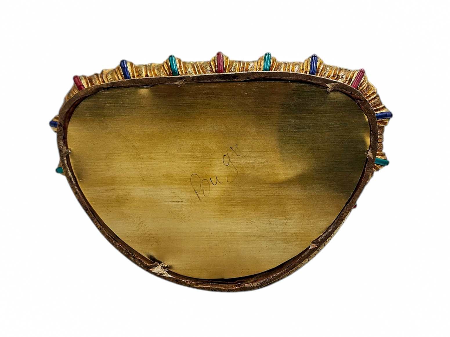The face of Shakyamuni Buddha is painted with gold to enhance its significant features, particularly the eyes, and lips. This detailed painting is essential as it brings forth the crucial attributes of the expression of eyes and lips that metal carving alone cannot capture.
