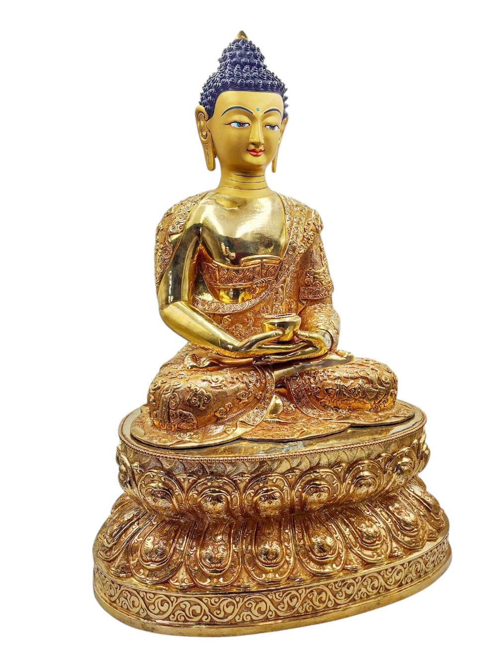 Amitabha Buddha Buddhist Handmade Statue with Double Base, Full Gold Plated, Face Painted, High Quality , Buddha of Infinite Light: Symbol of Boundless Compassion