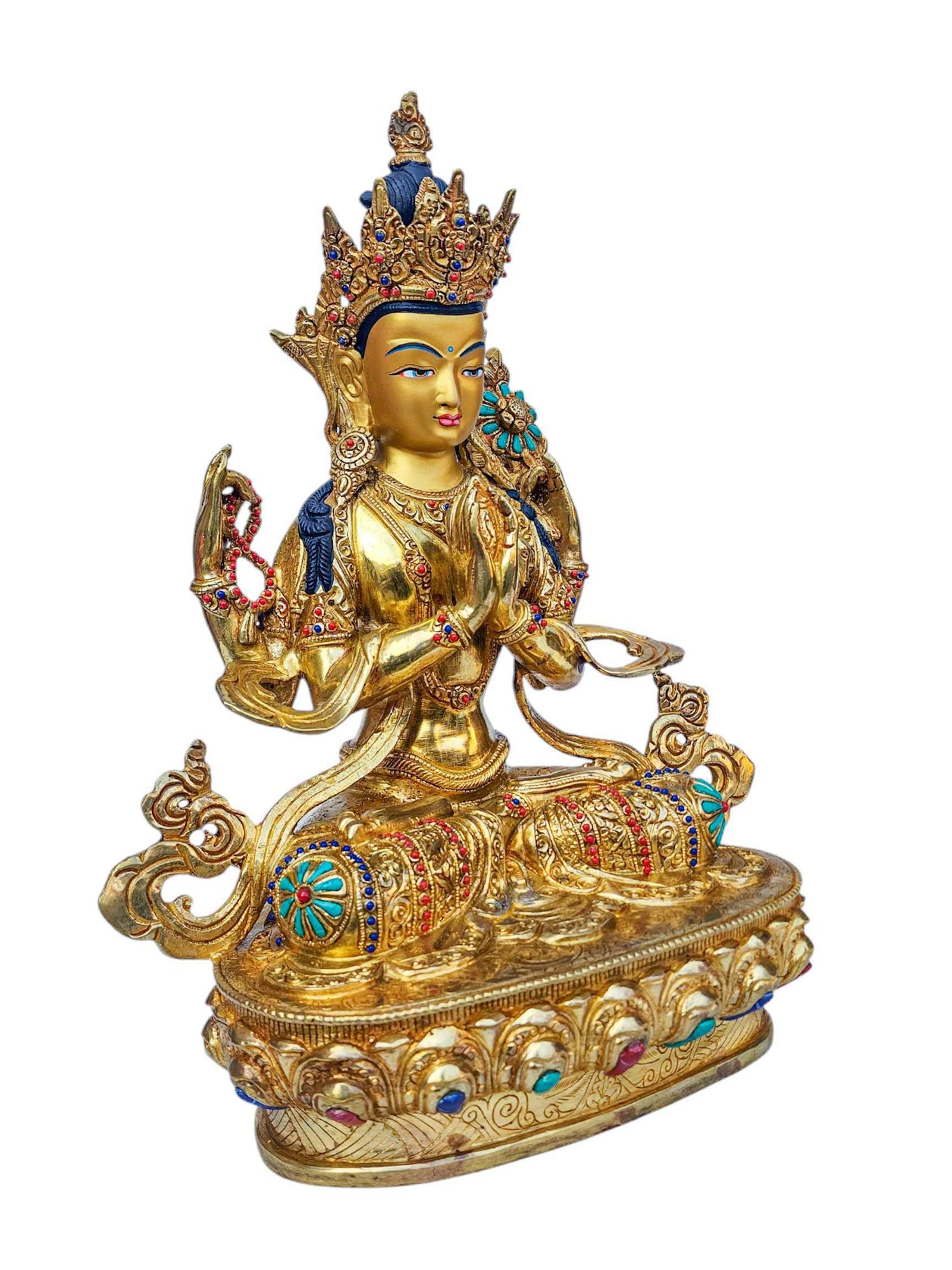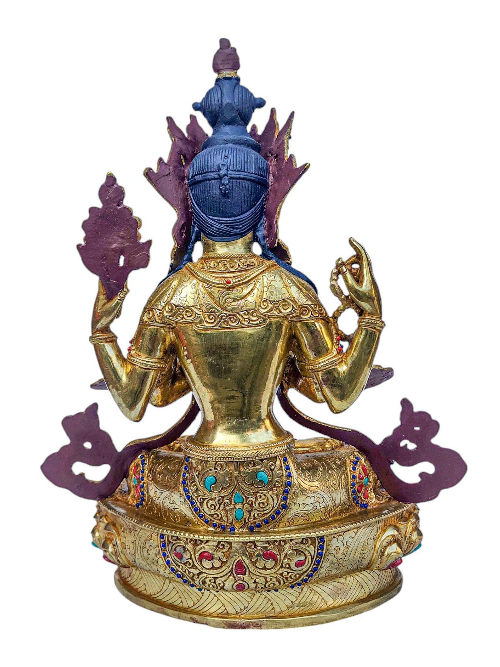 Chenrezig, Buddhist Handmade Statue, Full Gold Plated, Face Painted, Stone Setting and High Quality , Bodhisattva of Compassion, Protector of All Beings