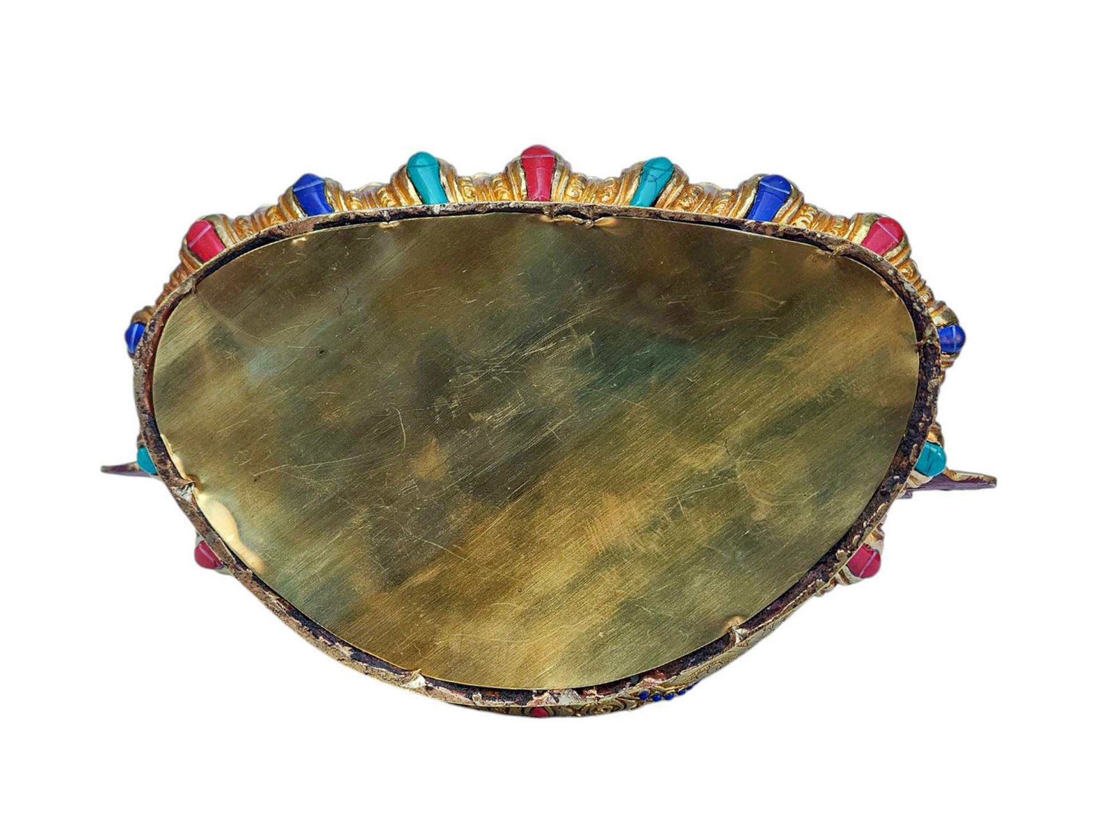The Chenrezig is adorned with an exquisite array of semi-precious stones, including turquoise, coral, and lapis lazuli. These stones are carefully selected and meticulously placed on the Chenrezig's surface, adding a touch of opulence and enhancing its overall beauty. Each stone is thoughtfully positioned using a high-quality adhesive, ensuring secure and long-lasting attachment. The vibrant colors and unique patterns of the stones create a captivating contrast against the backdrop of the Chenrezig, elevating its visual appeal and making it truly eye-catching. Read More