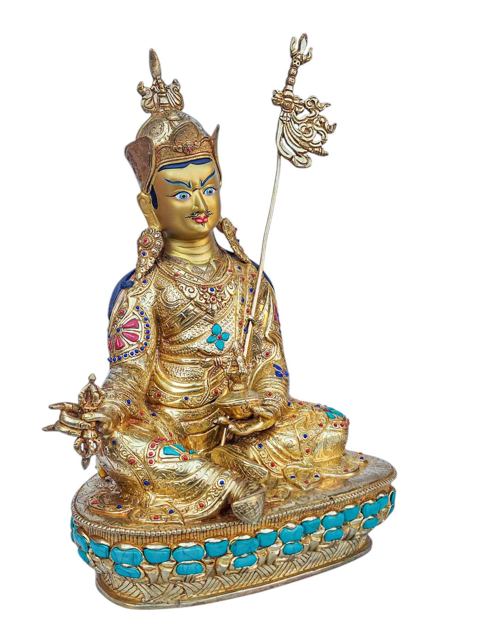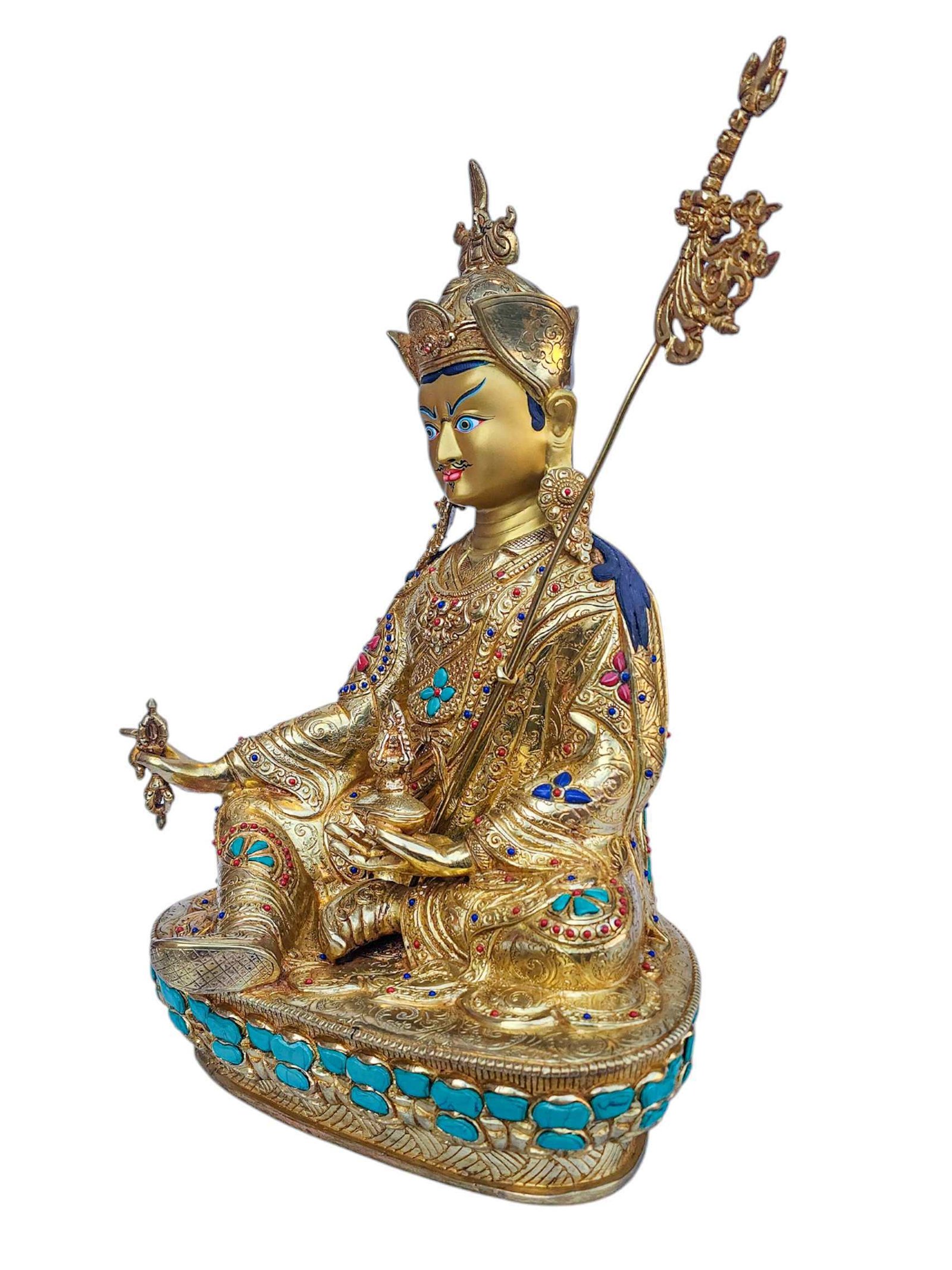 Padmasambhava, Buddhist Handmade Statue, Full Gold Plated, Face Painted, Stone Setting and High Quality , The lotus-born master, wisdom beyond time