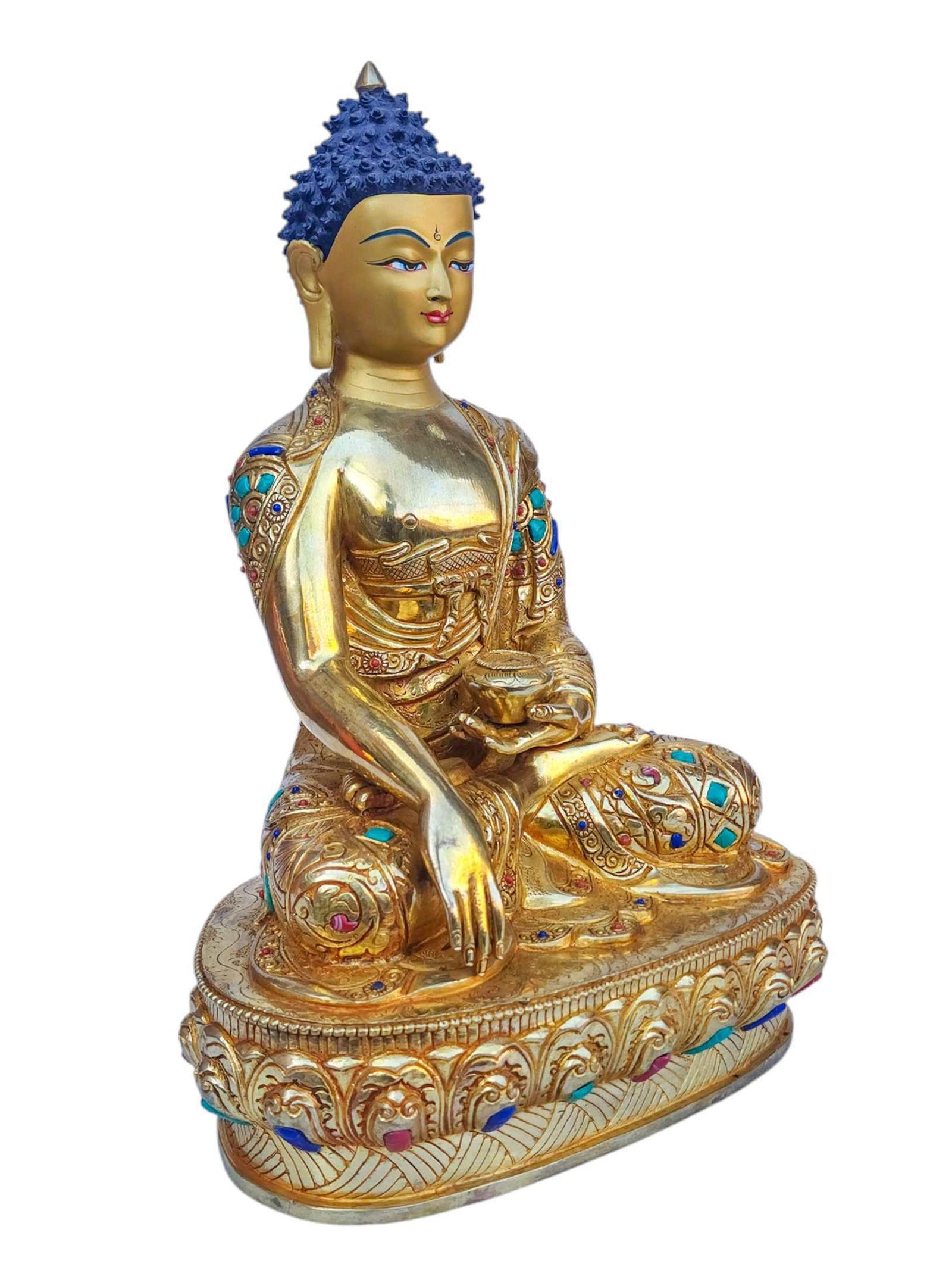 Shakyamuni Buddha, Buddhist Handmade Statue, Full Gold Plated, Face Painted, Stone Setting and High Quality , The Enlightened One and Teacher of Humanity