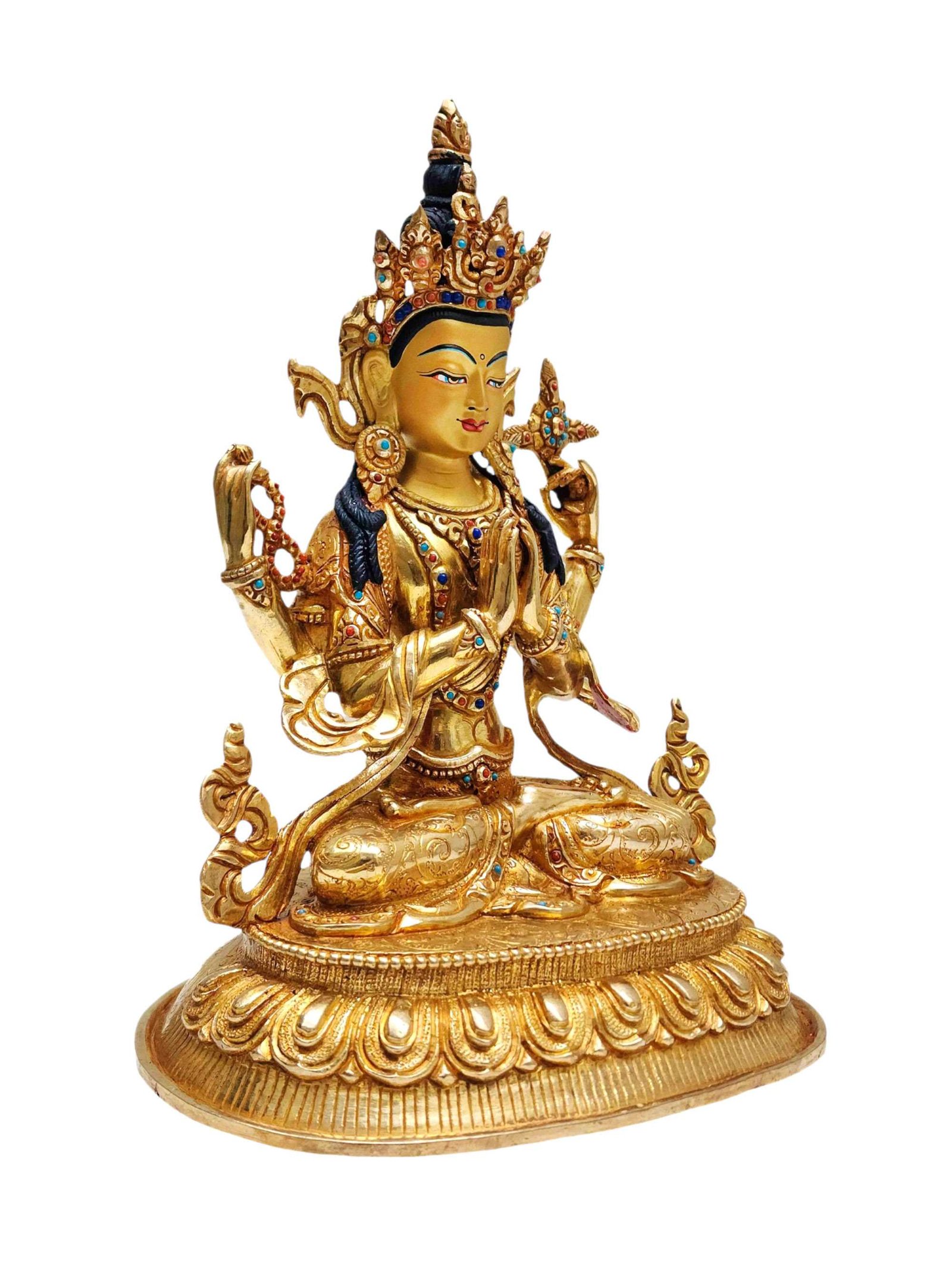 Chenrezig, Buddhist Handmade Statue, Full Gold Plated, Face Painted and High Quality , Bodhisattva of Compassion, Protector of All Beings