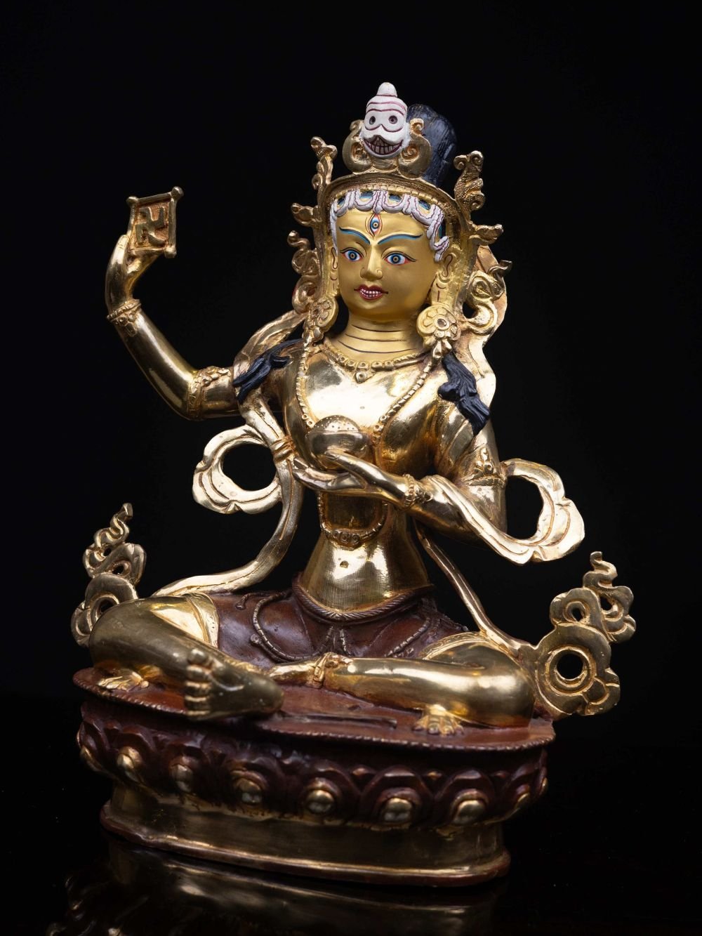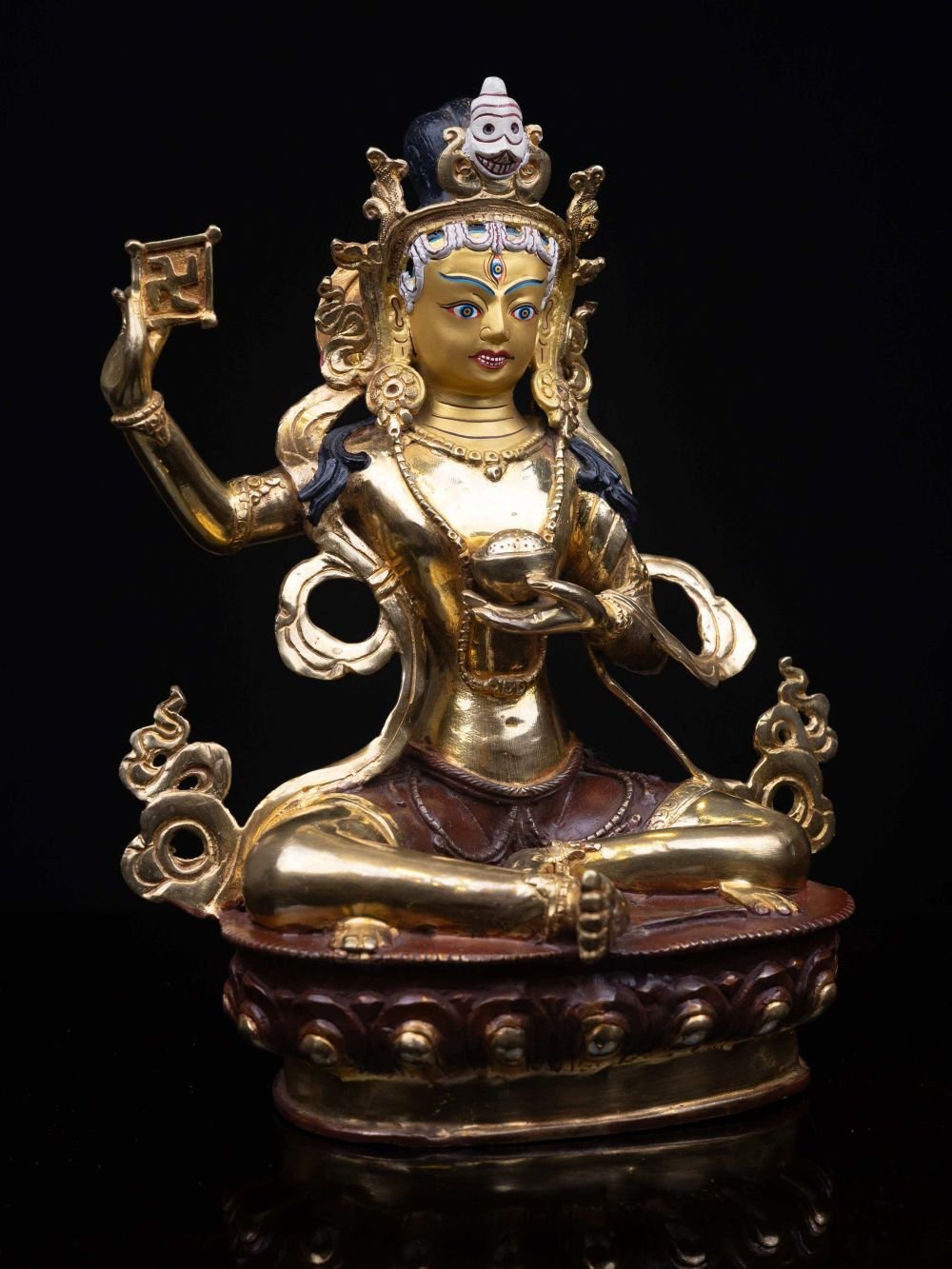 30 cm Sherab Chhama, Buddhist Handmade Statue, Half Gold Plated, Face Paintedand High Quality, Bon Culture