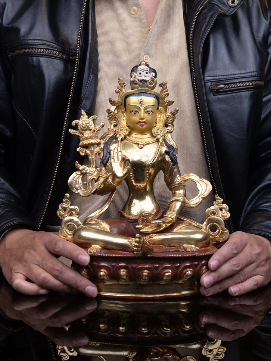 Lama Teswang, Buddhist Handmade Statue, Half Gold Plated, Face Painted and High Quality , Goddess of longevity, healing, and serene compassion