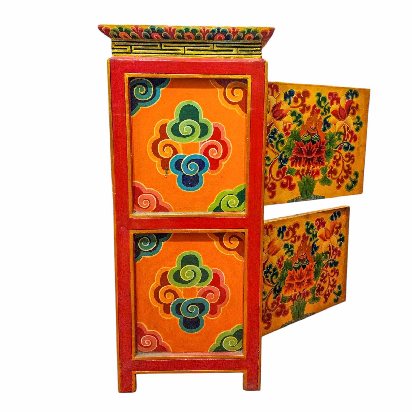 Tibetan Buddhist Cabinet with Buddha, Fourdoors, Painted |
