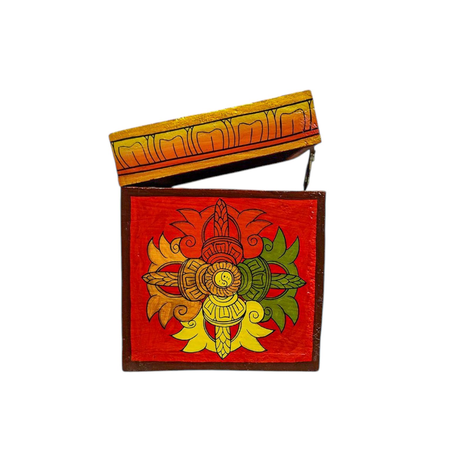 A Tibetan wooden box is a handcrafted storage container made from wood and often adorned with intricate Tibetan motifs and vibrant colors. These boxes are typically crafted by skilled artisans using traditional techniques passed down through generations. The decorations on the box usually include symbols of good fortune, such as lotus flowers, endless knots, dragons, or mythical creatures, and are painted in vivid hues like red, blue, green, and gold. These motifs not only add to the aesthetic appeal but also carry significant cultural and spiritual meanings in Tibetan Buddhism. Read More