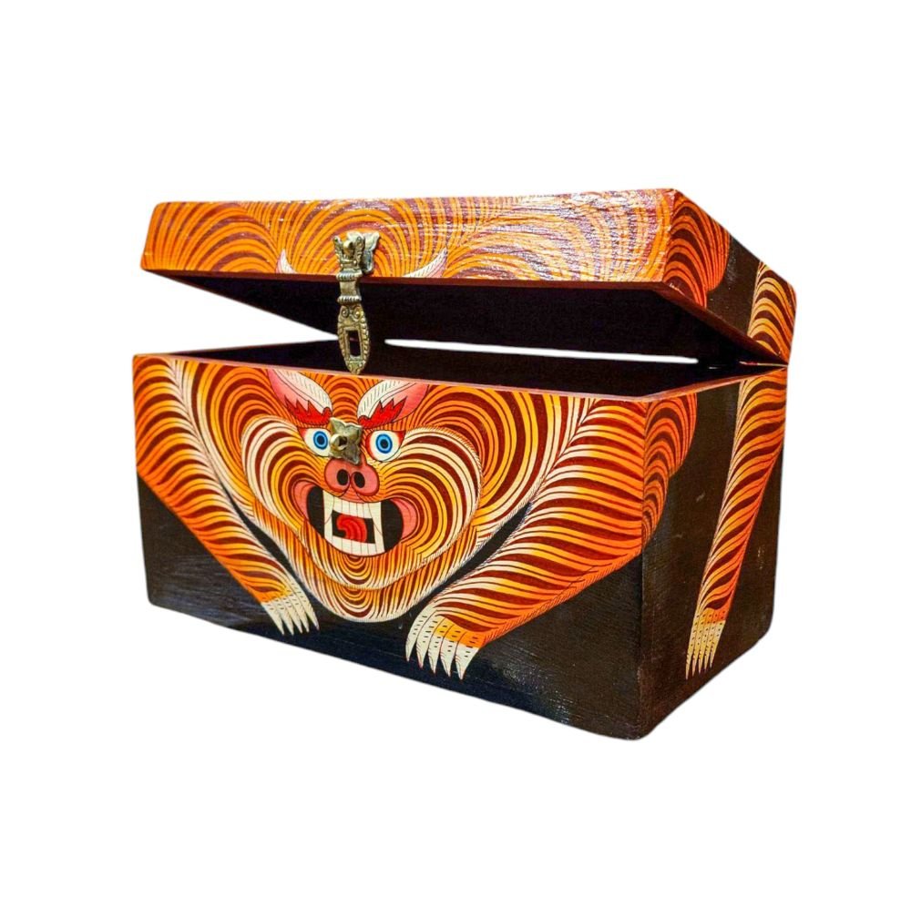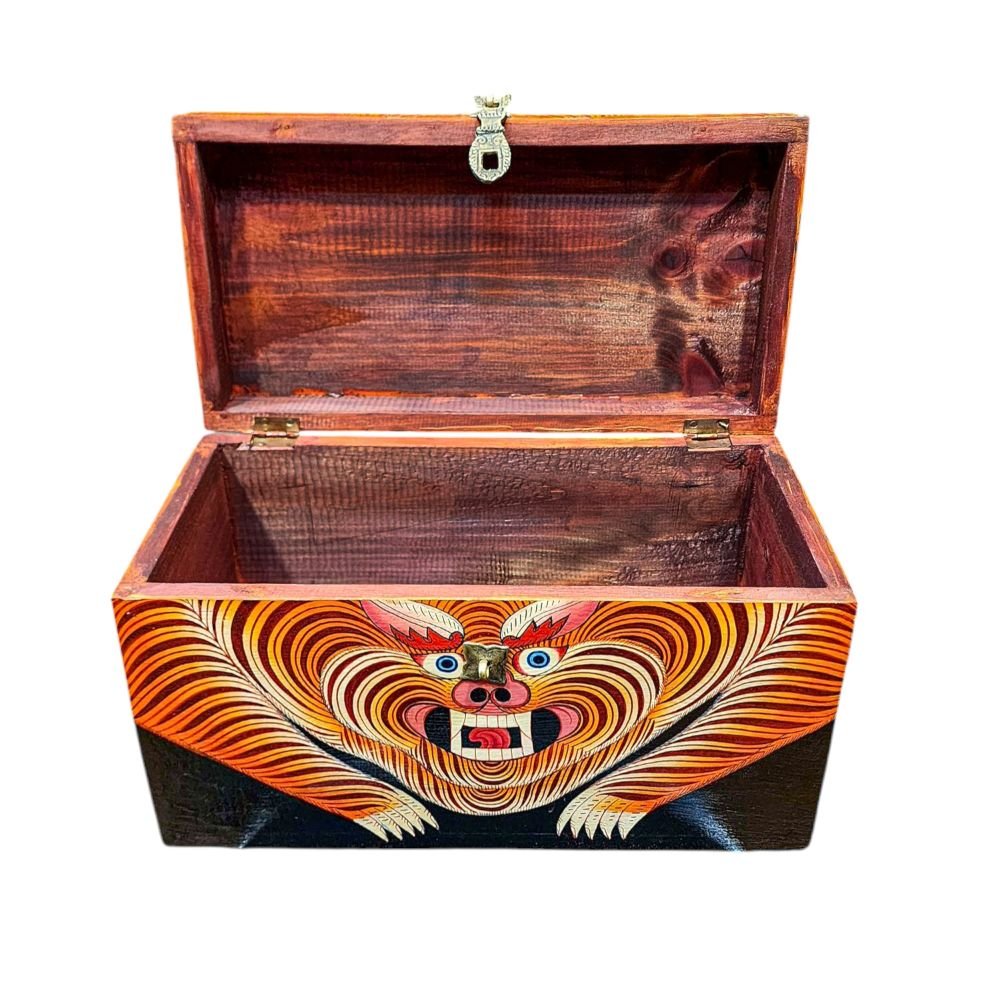 Buddhist Wooden Box with Tiger, Tibetan Style with Traditional Colors |
