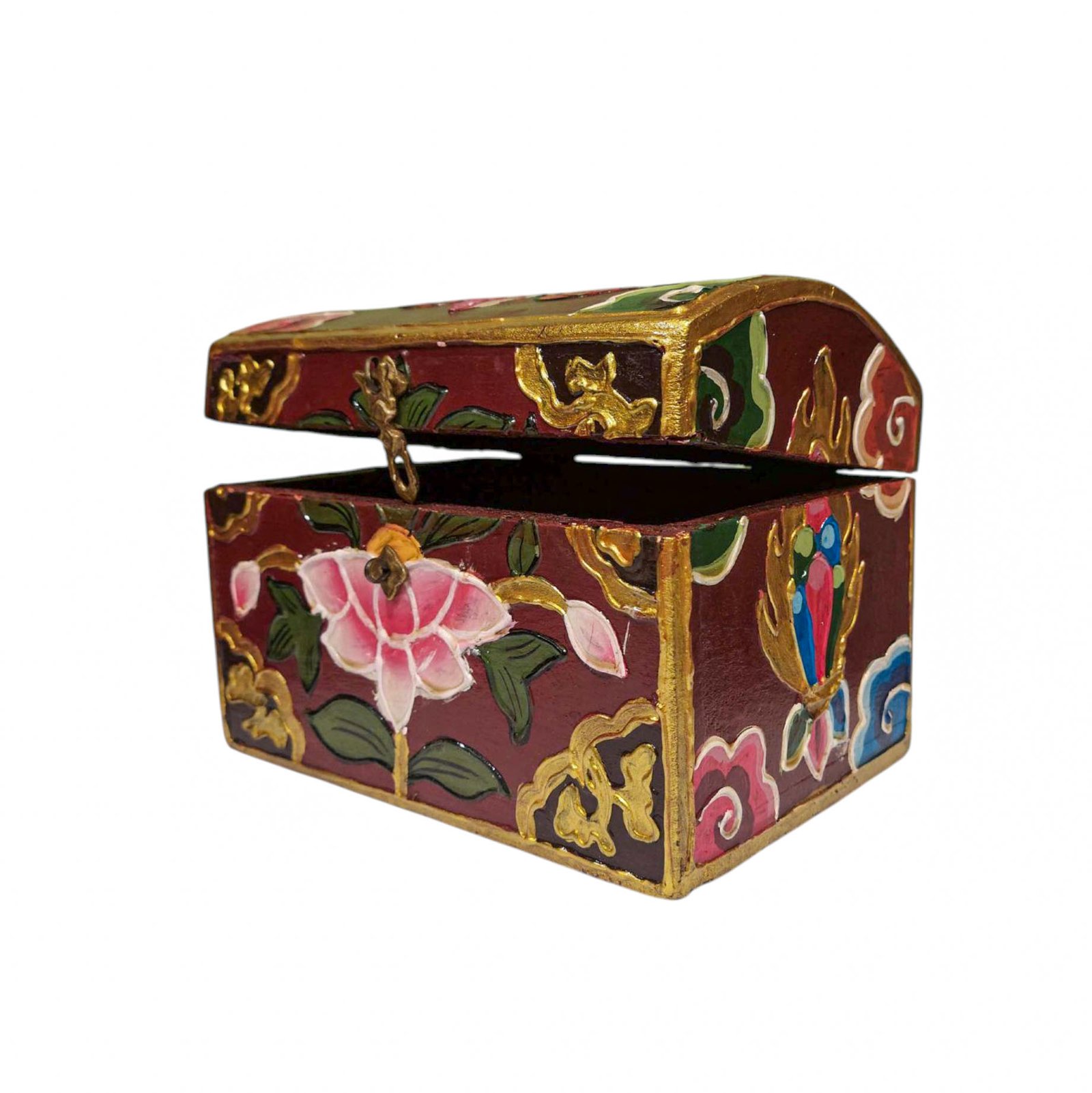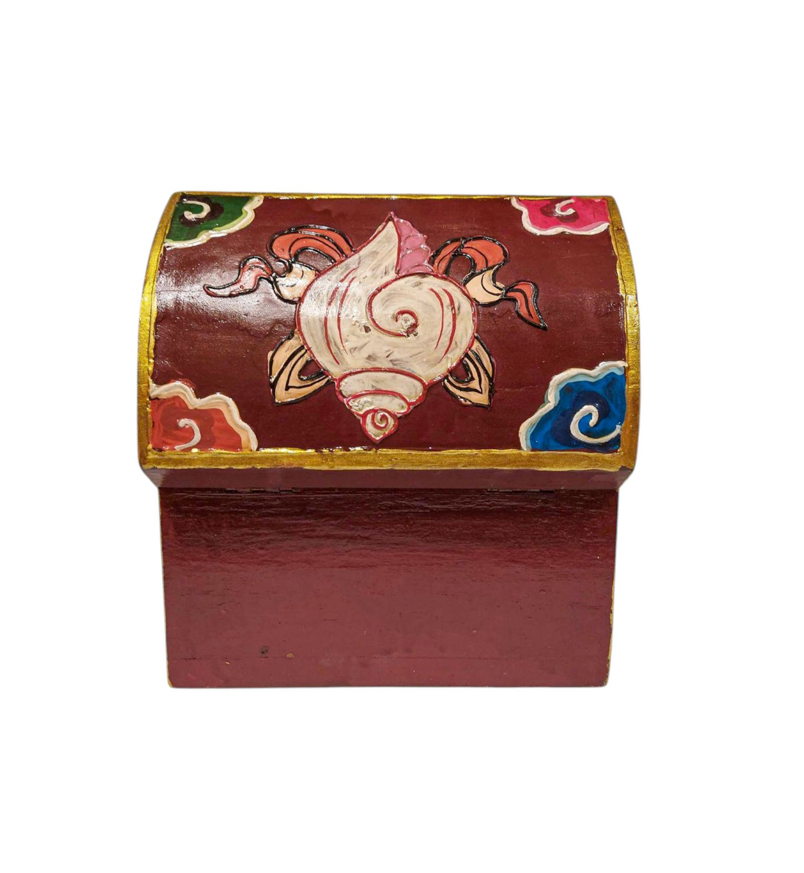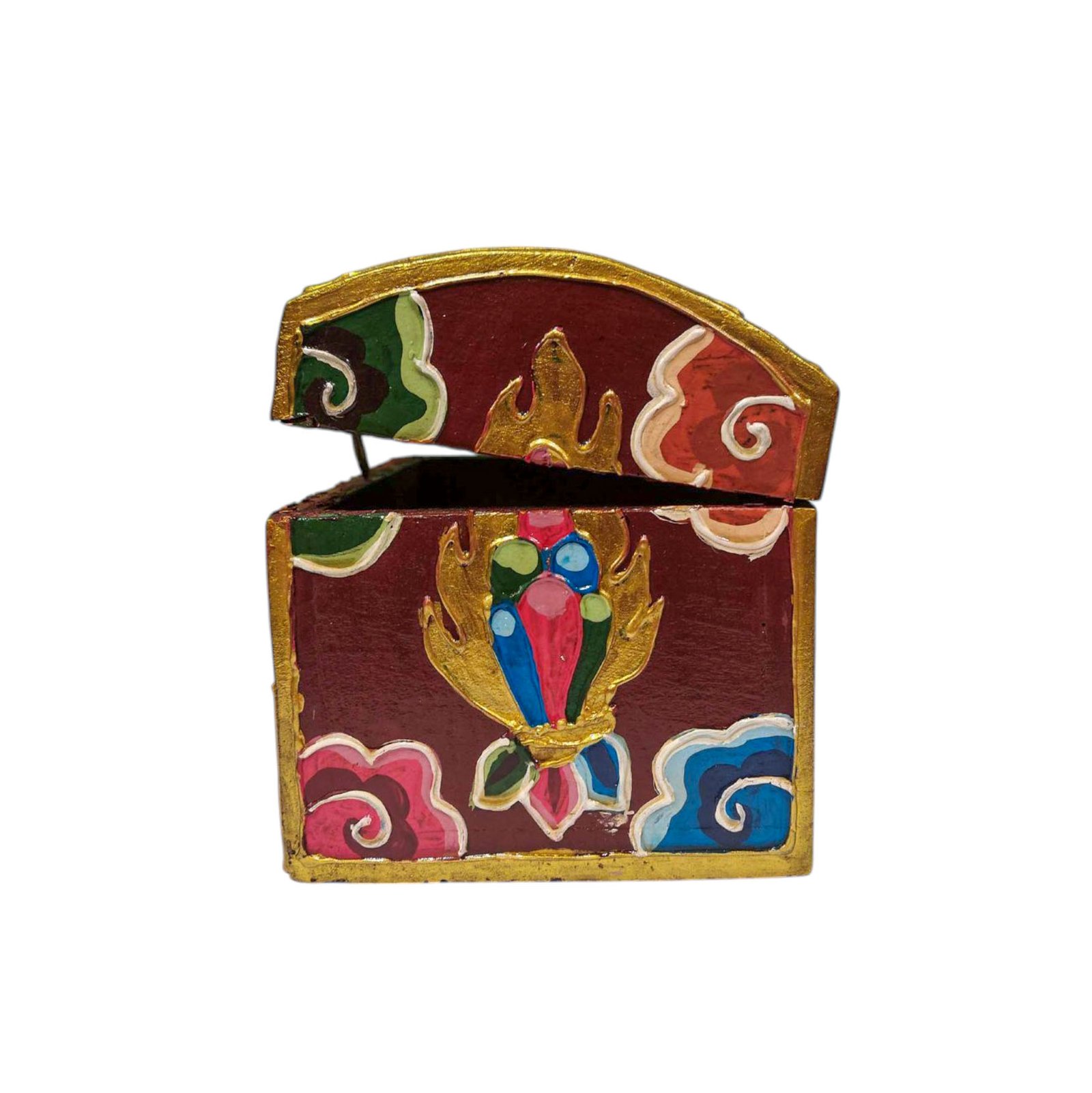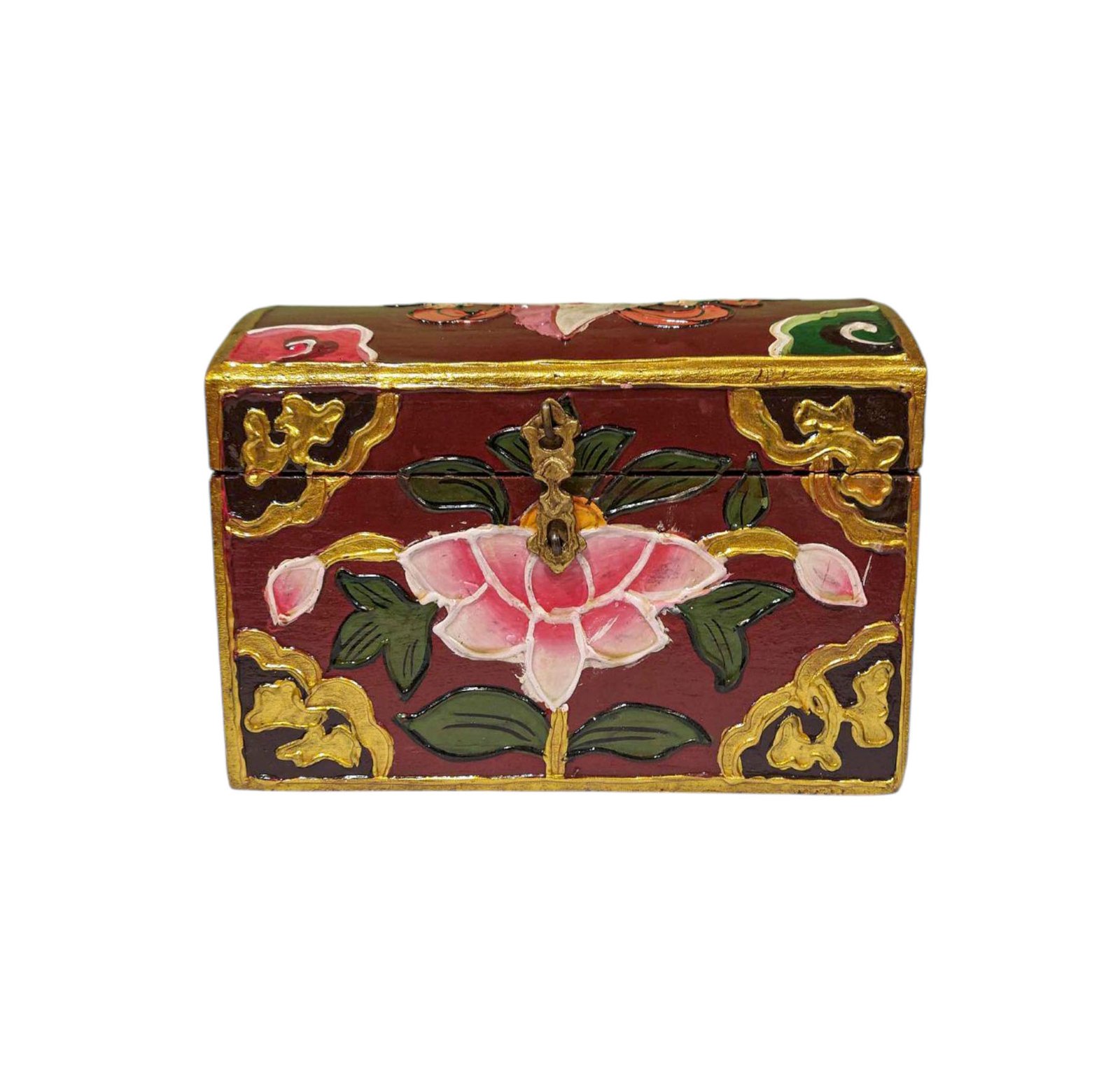 Buddhist Wooden Box with Lotus Design, Tibetan Style with Traditional Colors |