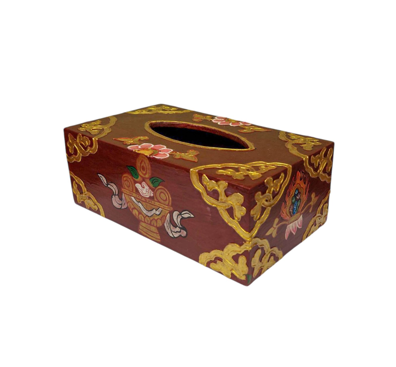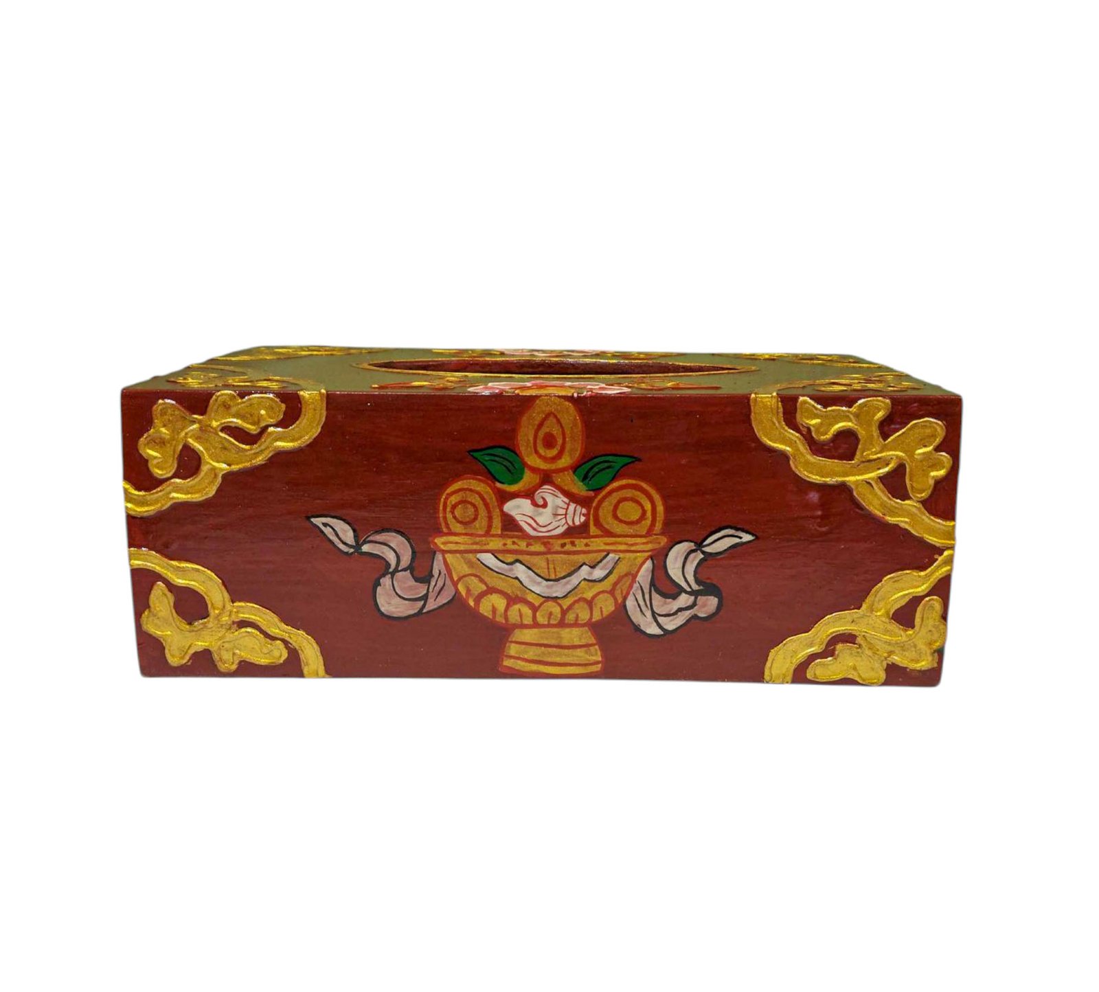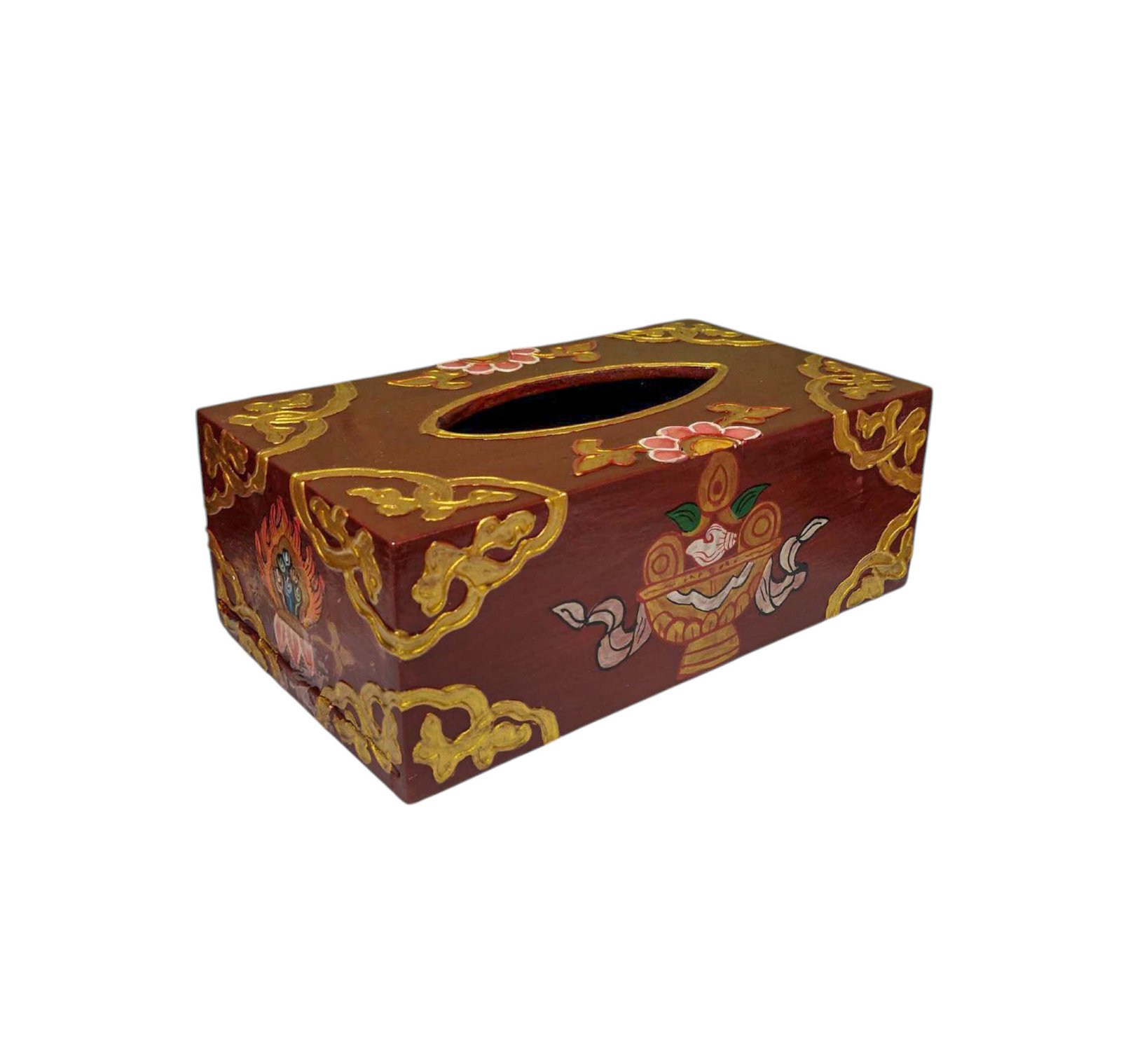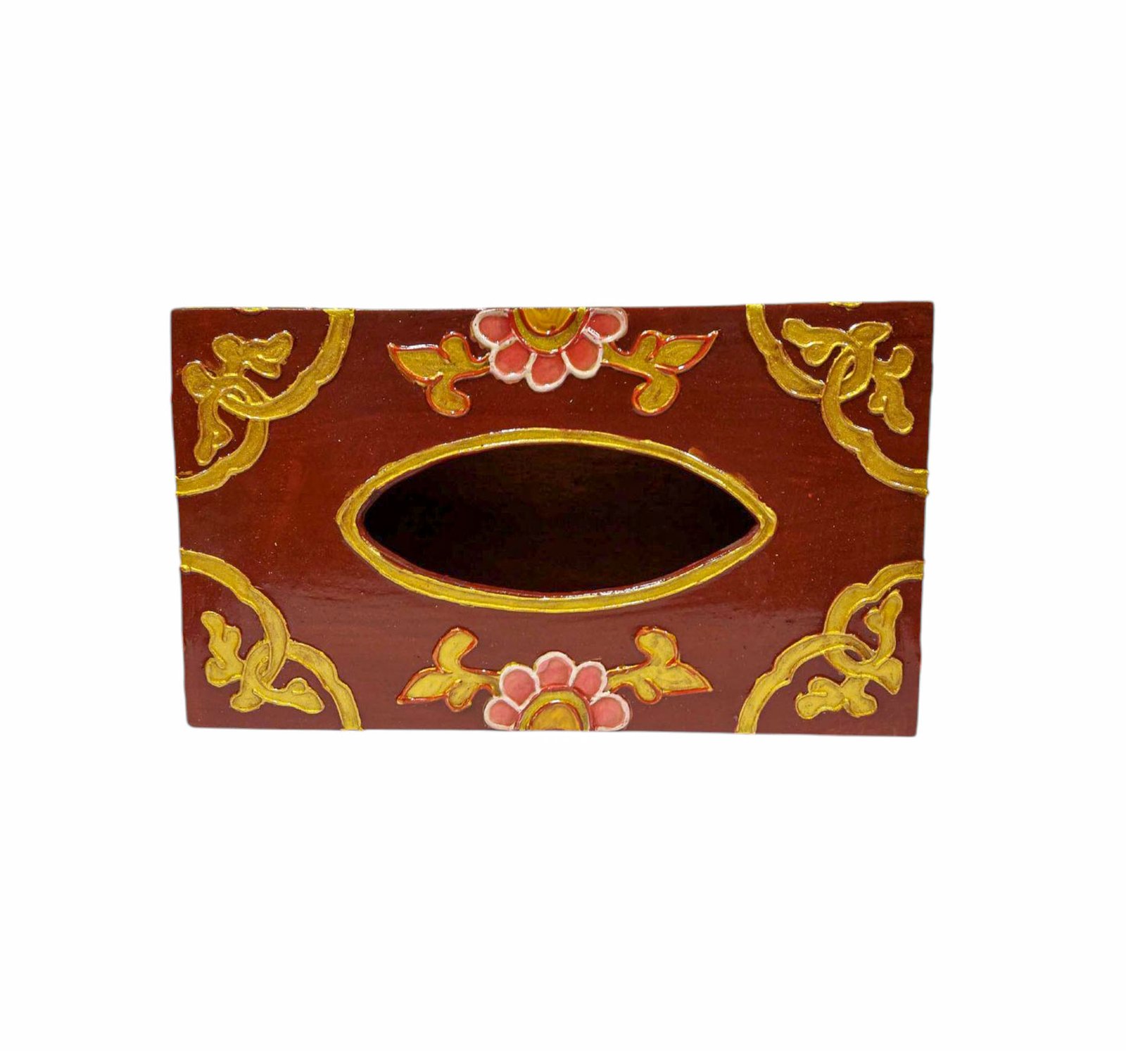 Tibetan Color Palette: Painted in the alluring colors reminiscent of Tibetan art, the tissue holder emanates an aura of serenity and tranquility. The beautiful hues of red, blue, green, and gold evoke a feeling of cultural enchantment, creating a harmonious atmosphere wherever it's placed.
