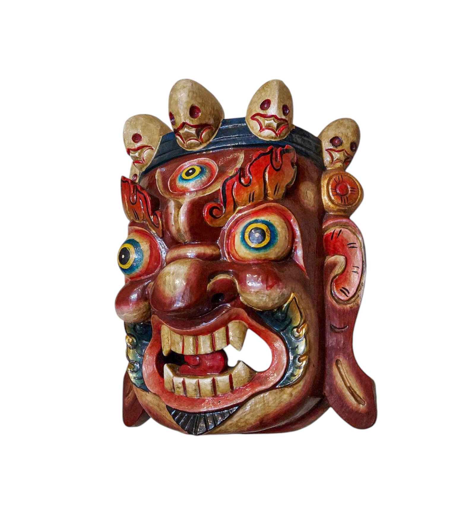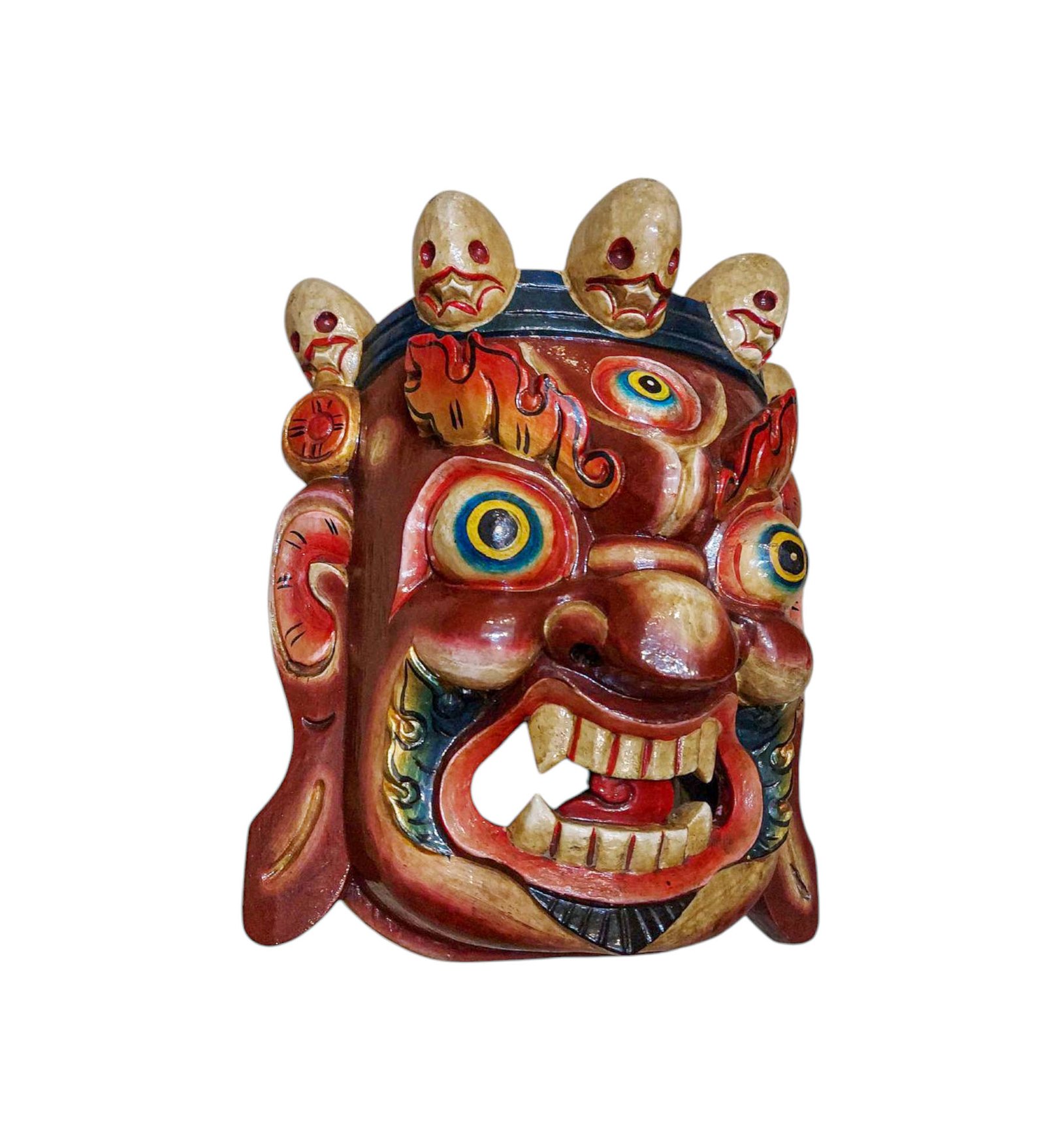 this Bhairav mask is Nepali handmade mask and we are Introducing our exquisite collection of Nepali handmade hand-carved wooden Buddhist masks and wall hangings, meticulously crafted by skilled artisans. Each piece in this collection reflects the rich cultural heritage and spiritual significance of Nepal. These masks and wall hangings are not just decorative pieces but hold deep symbolic meaning, making them perfect for adding an authentic touch to your living spaces or meditation rooms. Read More