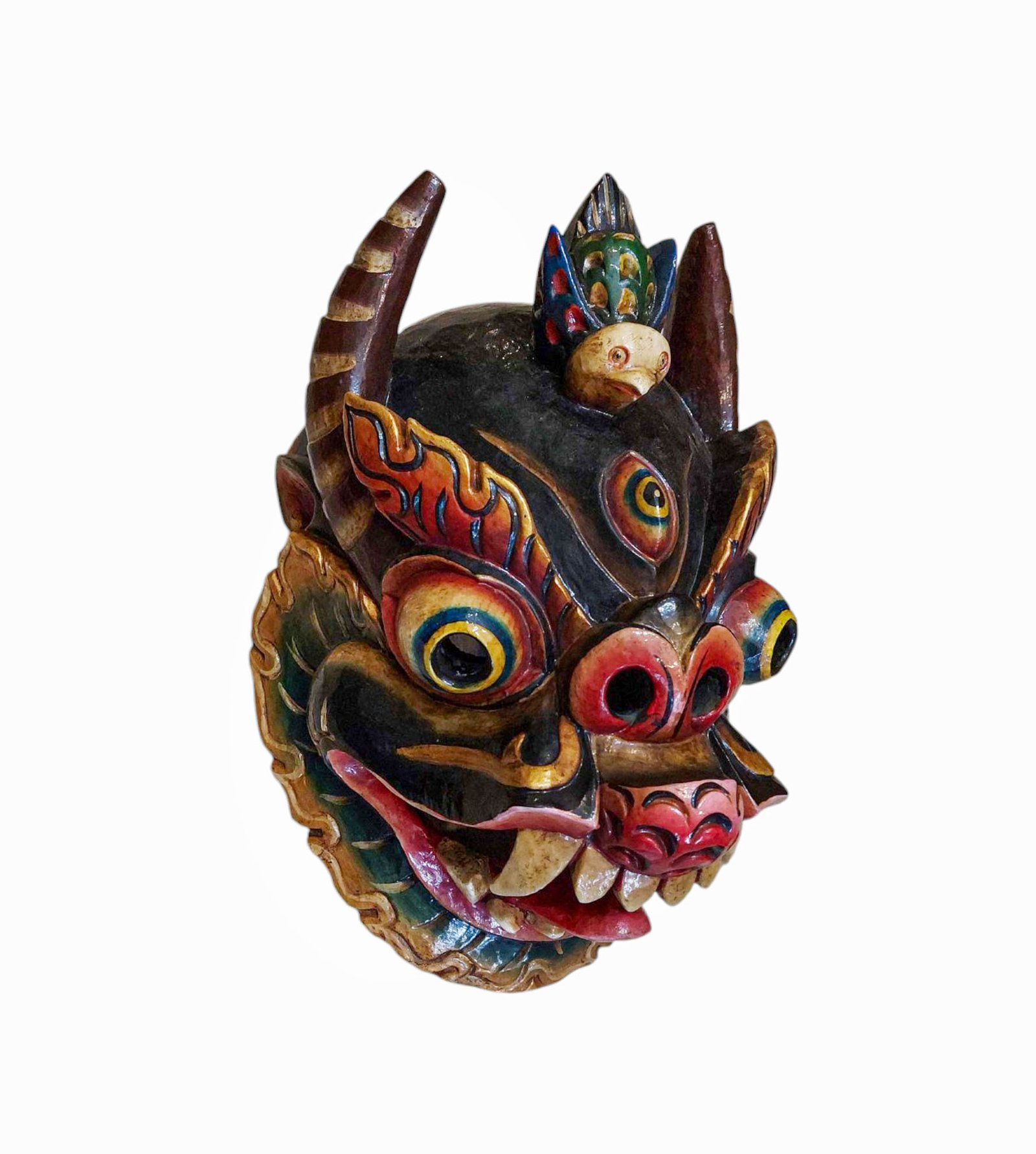 this Dragon mask is Nepali handmade mask and we are Introducing our exquisite collection of Nepali handmade hand-carved wooden Buddhist masks and wall hangings, meticulously crafted by skilled artisans. Each piece in this collection reflects the rich cultural heritage and spiritual significance of Nepal. These masks and wall hangings are not just decorative pieces but hold deep symbolic meaning, making them perfect for adding an authentic touch to your living spaces or meditation rooms. Read More