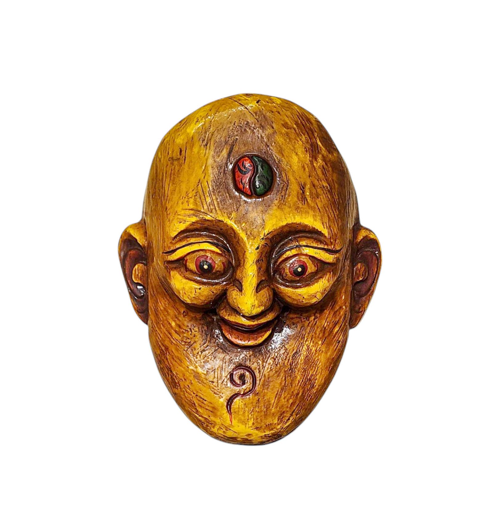 this Wooden Mask mask is Nepali handmade mask and we are Introducing our exquisite collection of Nepali handmade hand-carved wooden Buddhist masks and wall hangings, meticulously crafted by skilled artisans. Each piece in this collection reflects the rich cultural heritage and spiritual significance of Nepal. These masks and wall hangings are not just decorative pieces but hold deep symbolic meaning, making them perfect for adding an authentic touch to your living spaces or meditation rooms. Read More