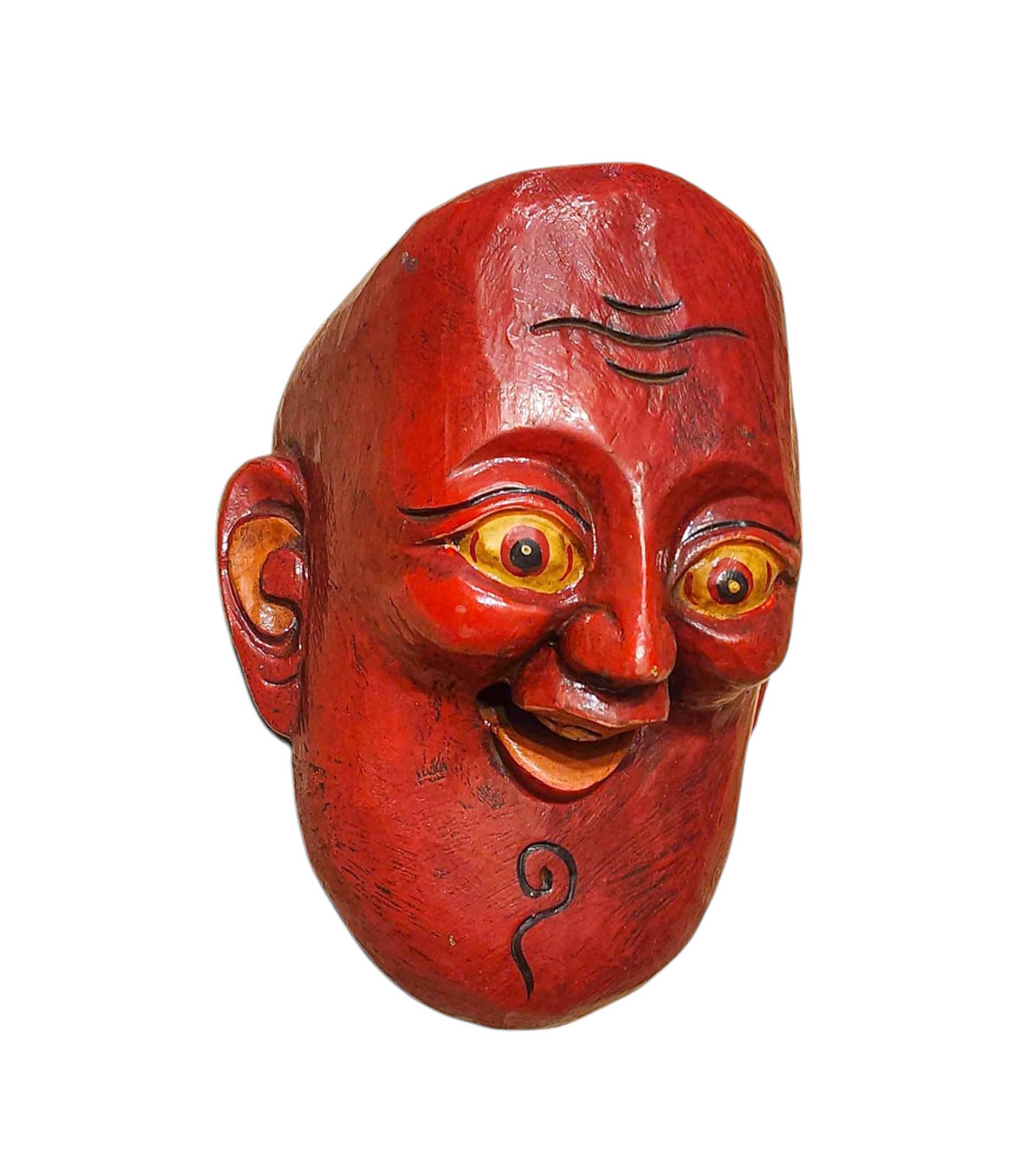 this Wooden Mask mask is Nepali handmade mask and we are Introducing our exquisite collection of Nepali handmade hand-carved wooden Buddhist masks and wall hangings, meticulously crafted by skilled artisans. Each piece in this collection reflects the rich cultural heritage and spiritual significance of Nepal. These masks and wall hangings are not just decorative pieces but hold deep symbolic meaning, making them perfect for adding an authentic touch to your living spaces or meditation rooms. Read More