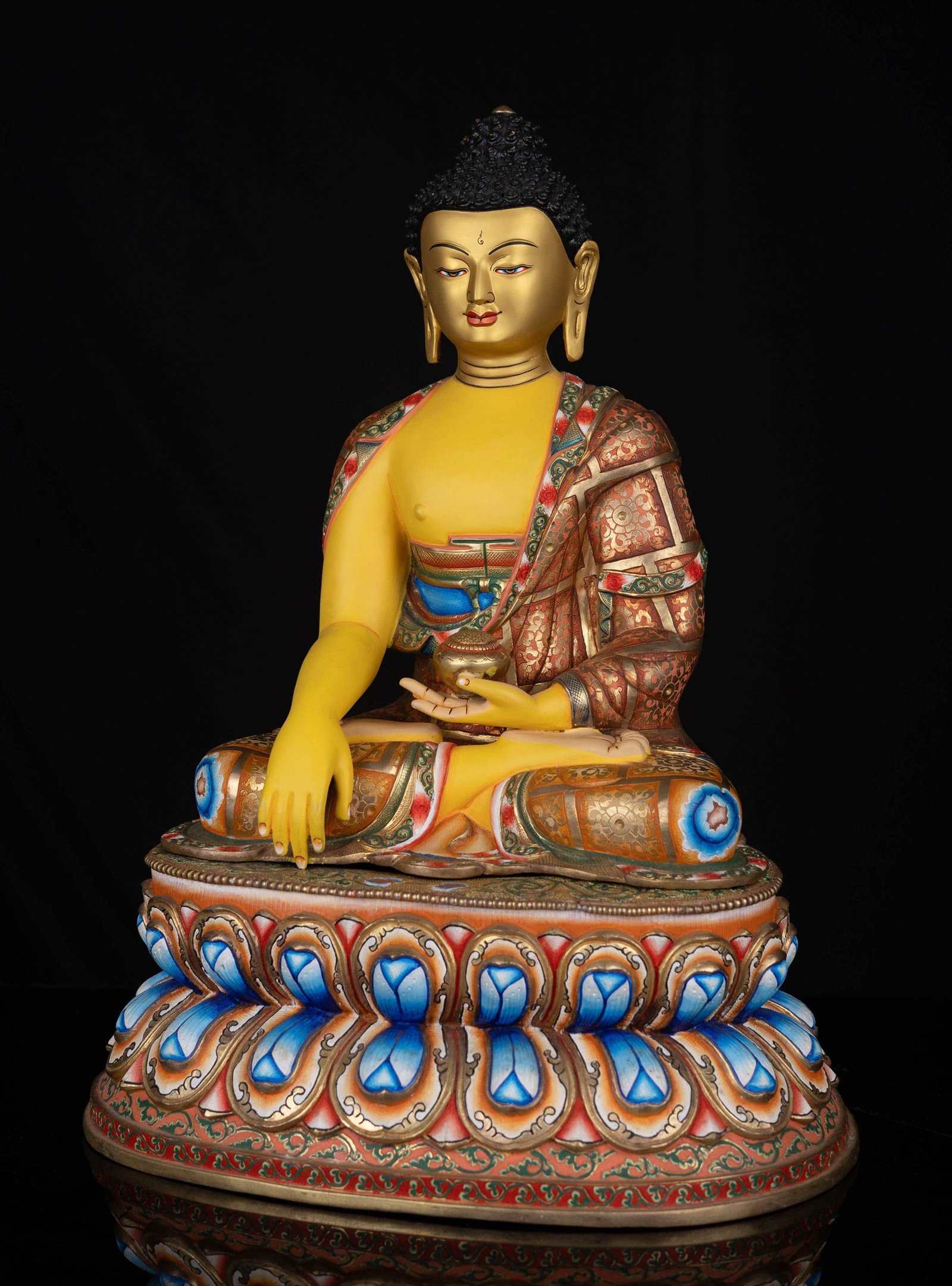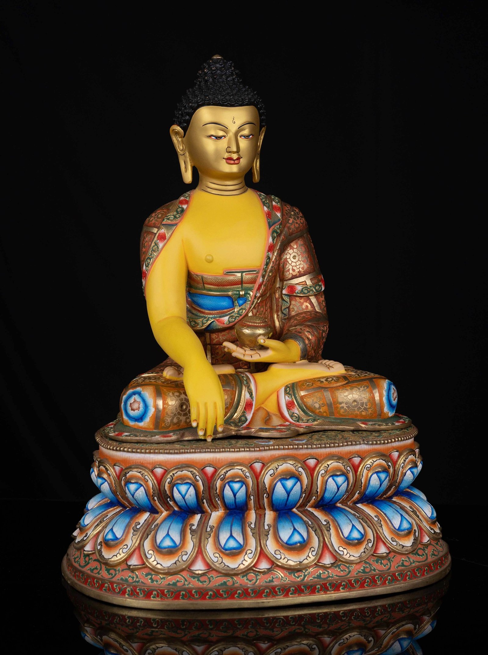 The Shakyamuni Buddha is adorned with traditional colors, creating a captivating aesthetic through a combination of gold and various hues. This painting technique follows a time-honored process that aims to faithfully represent the Shakyamuni Buddha in accordance with traditional color descriptions. In the context of Buddhist statues, this approach holds great significance. Each statue has its own primary color, and it is crucial to depict the statue in its authentic shade. Read More
