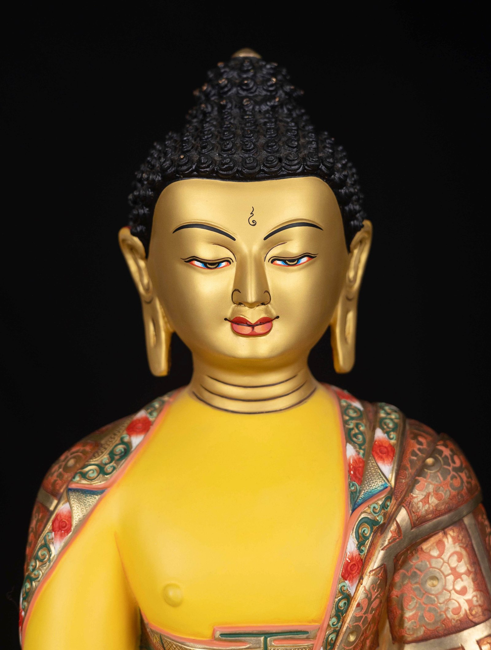Shakyamuni Buddha Buddhist Handmade Statue, Thangka Color Finish, Face Painted , The Enlightened One and Teacher of Humanity