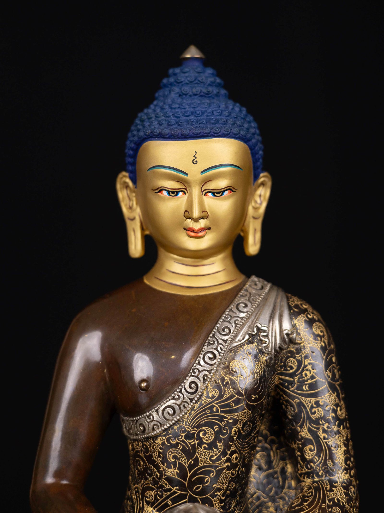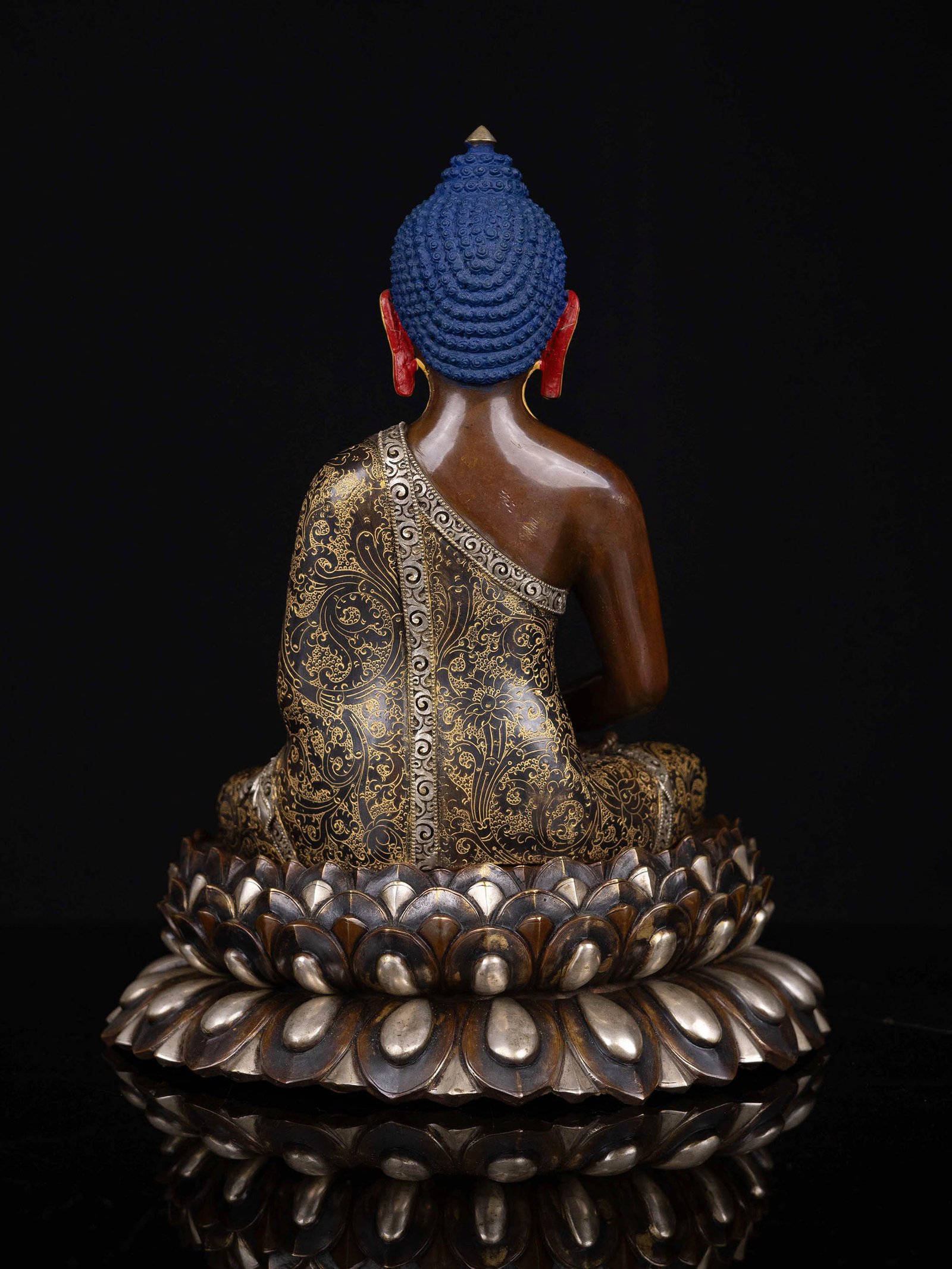 Amitabha Buddha, Buddhist Statue, Silver and Chocolate Oxidized, Face Painted , Buddha of Infinite Light: Symbol of Boundless Compassion