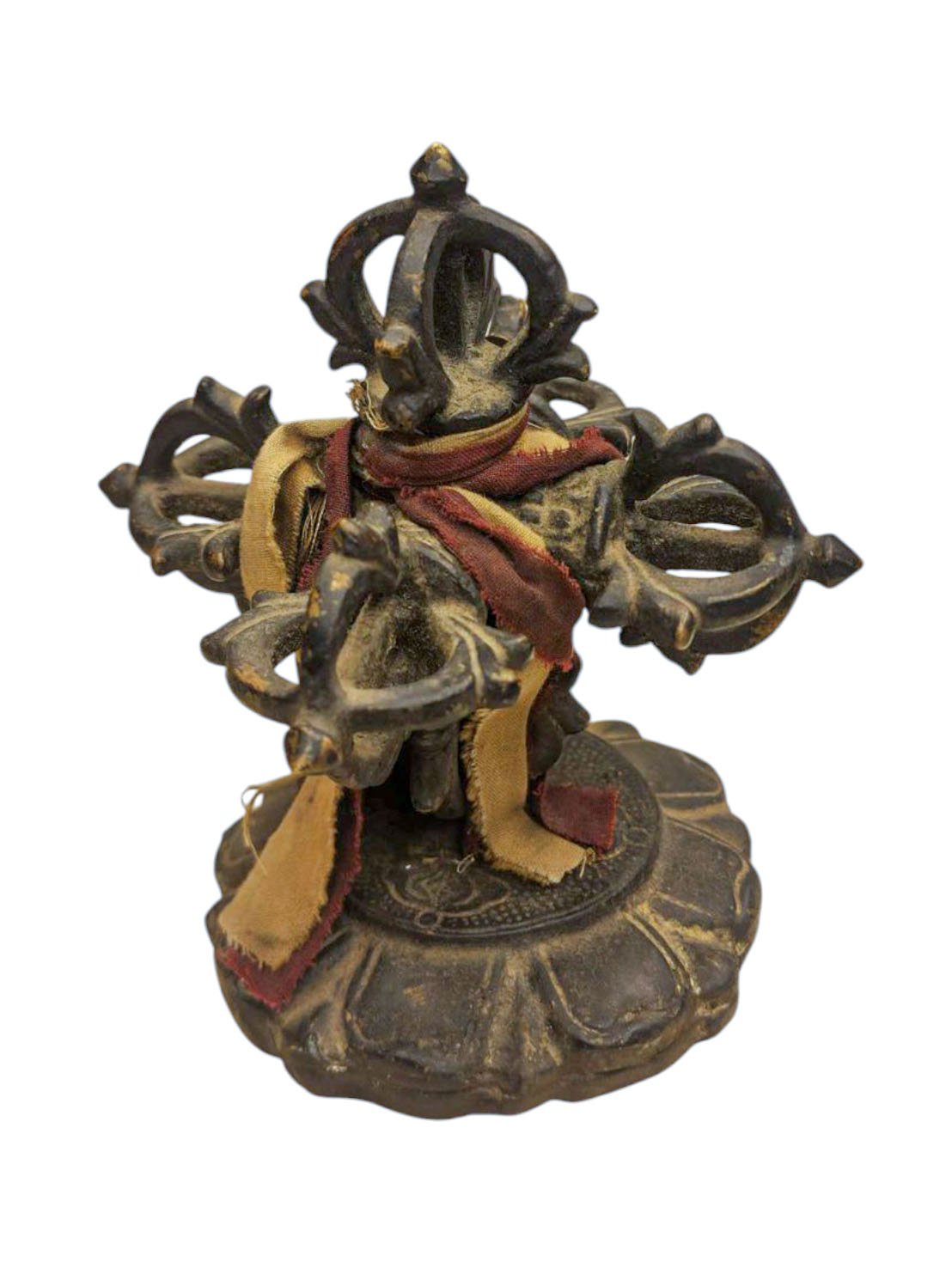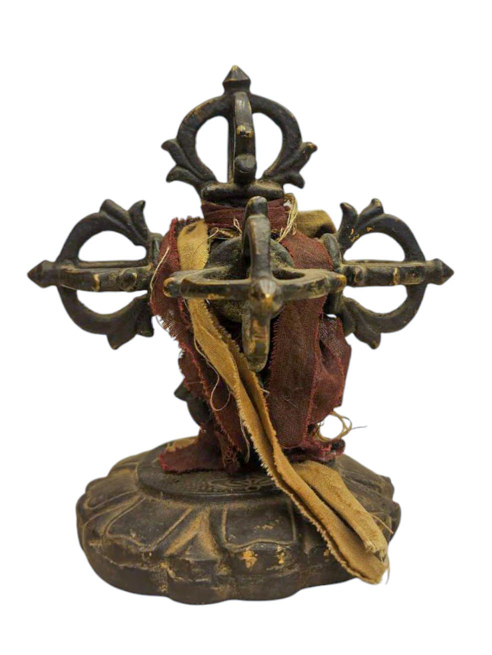 This is an antique patina-finished Double Dorje. This is not an antique statue. It is just an antique patina finish. This Double Dorje is a testament to the artisan's mastery of the art of aging. Its antique patina has been meticulously crafted to give the appearance of an aged statue, showcasing the artist's unique techniques and skills. Through undisclosed processes and careful aging treatments, the Double Dorje undergoes a transformation that captures the essence of time and history. Read More