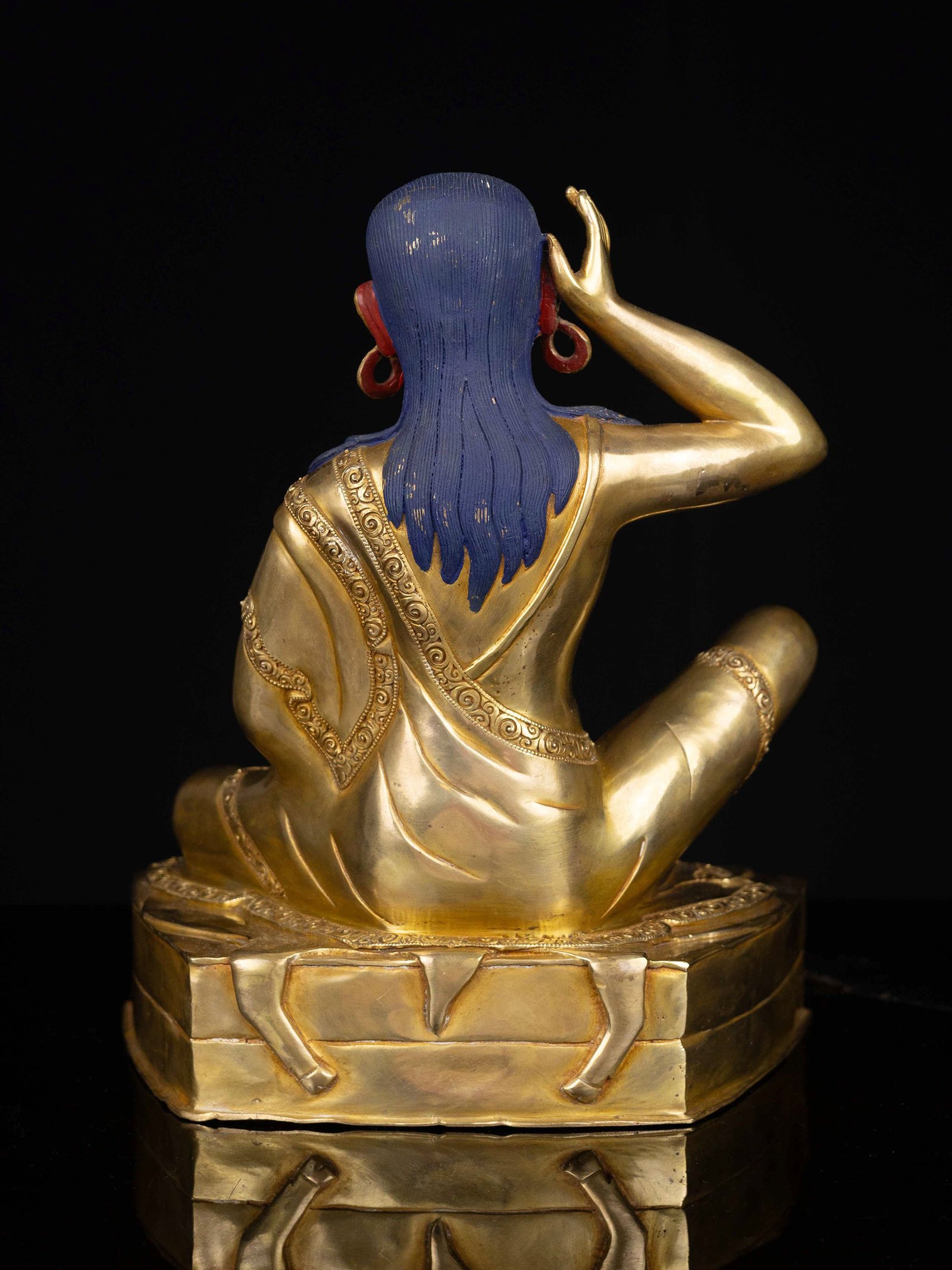 This Three Kayug Masters is finished with full gold plating. also known as mercury gold plating or fire gold plating. This traditional technique involves the application of a genuine layer of gold onto the Three Kayug Masters. Referred to as mercury gold plating, it is considered the correct and authentic form of gold plating in Nepal. Despite being more expensive than electroplating, this traditional mercury gold plating is gaining popularity again in Nepal. People are drawn to its authenticity, longevity, and the unmatched beauty it brings to the Three Kayug Masters. The resurgence of interest in this traditional form of gold plating reflects a growing appreciation for the craftsmanship and cultural heritage of Nepal