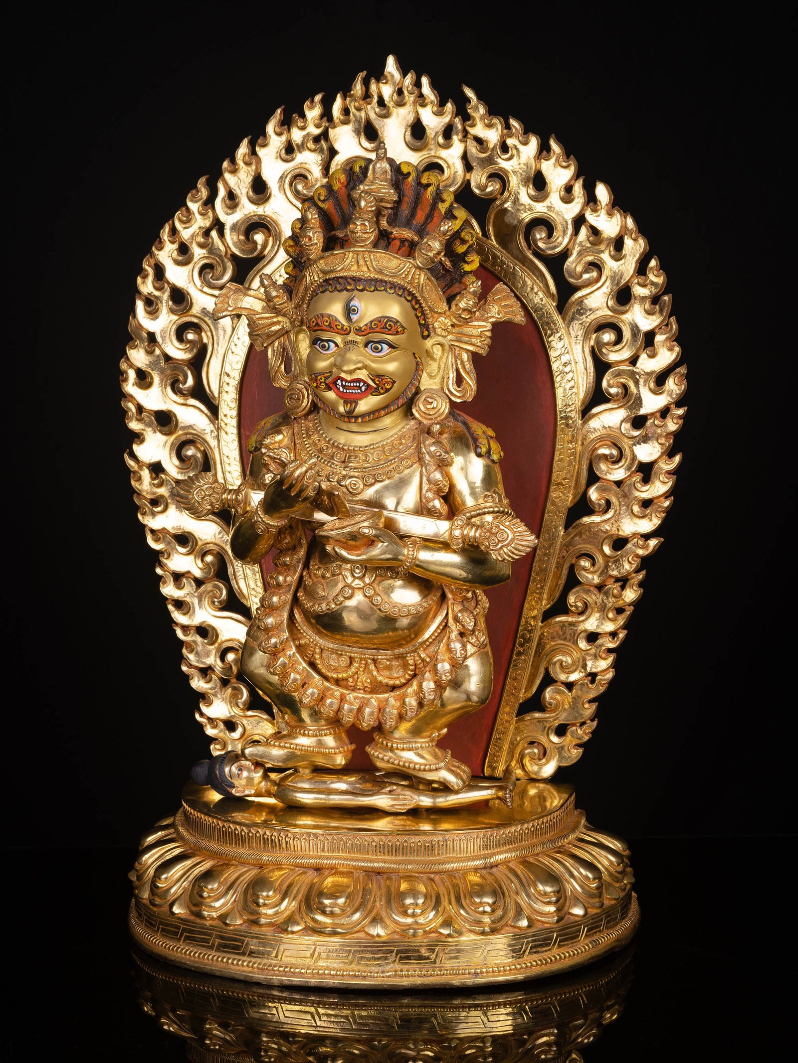 Mahakala Two Arms Buddhist Handmade Statue, Full Gold Plated, Face Painted, High Quality , Two-armed protector, fierce and swift, removes obstacles and fear