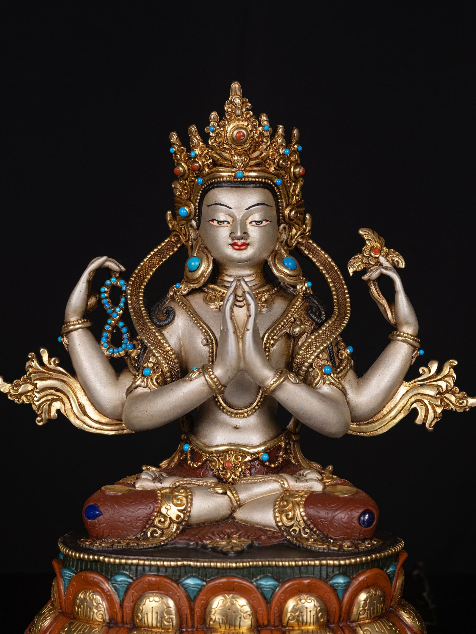 Chenrezig, Buddhist Handmade Statue, Thangka Color Finishing, Stone Setting , Bodhisattva of Compassion, Protector of All Beings