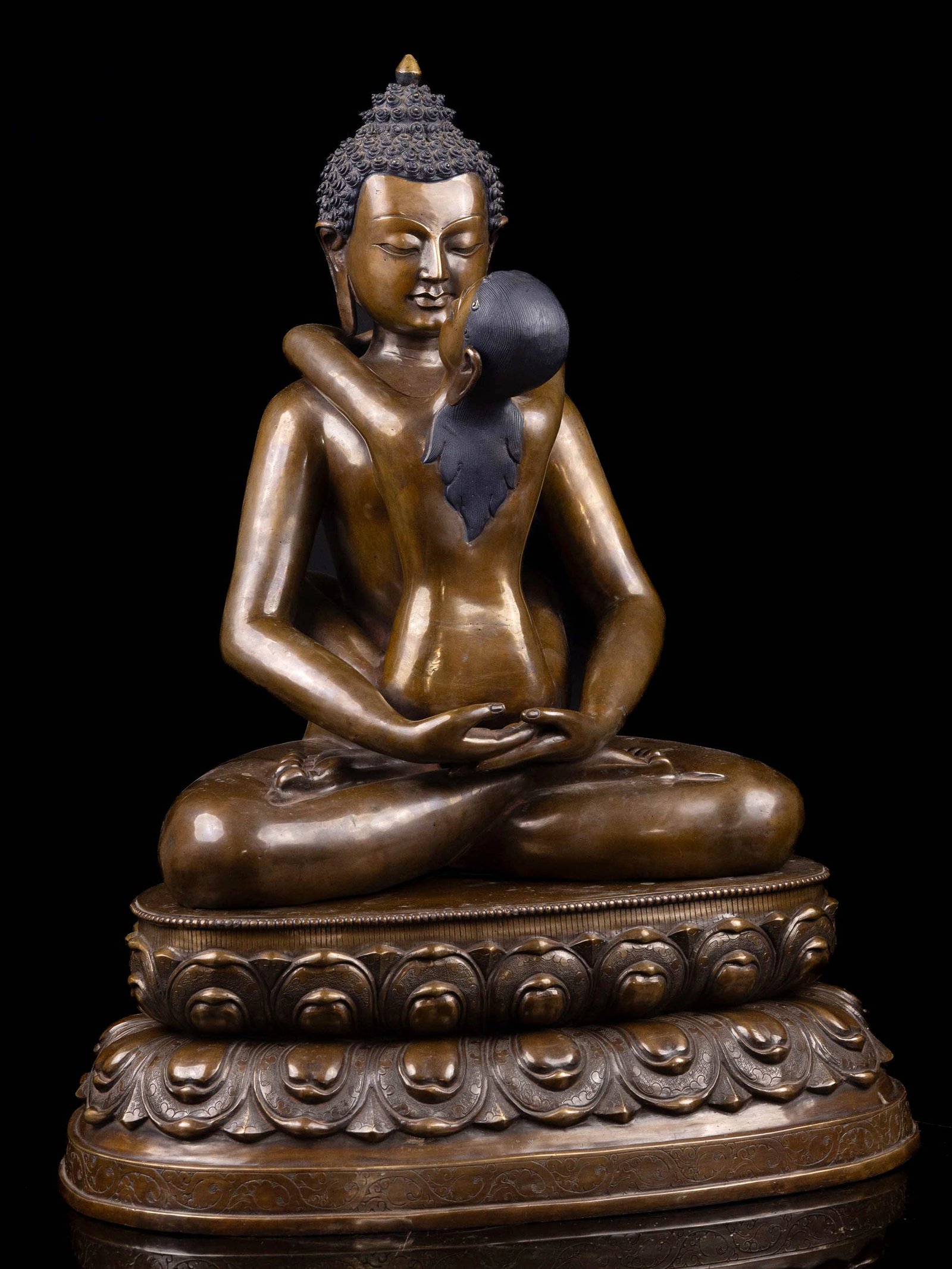 Samantabhadra Buddha Shakti with Double Base Handmade Statue, Chocolate Oxidized Finish , Bodhisattva of universal virtue, embodying practice and compassion
