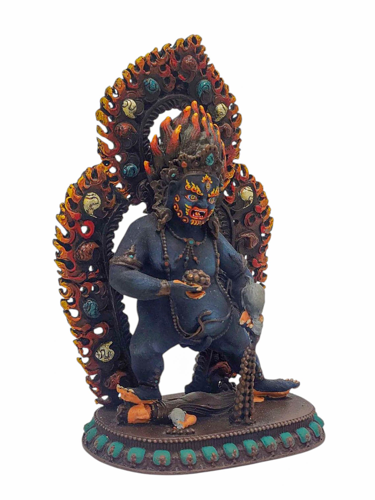 Black Jambhala, Buddhist Miniature Statue, Thangka Color Finishing , Buddha of Wealth, Removing Obstacles to Prosperity and Spiritual Growth