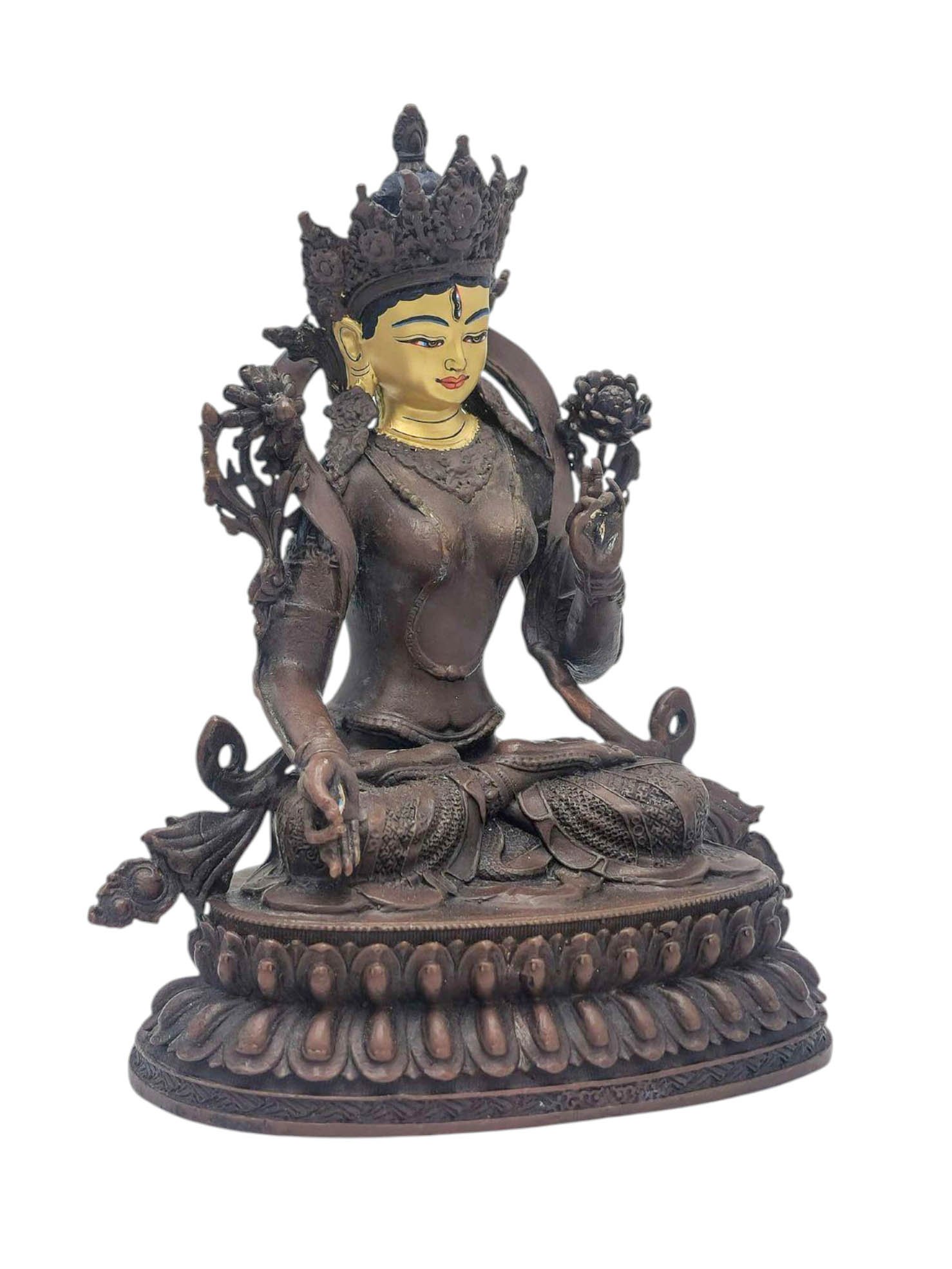 White Tara, Buddhist Miniature Statue, Chocolate Oxidized, Face Painted , Goddess of longevity, healing, and serene compassion