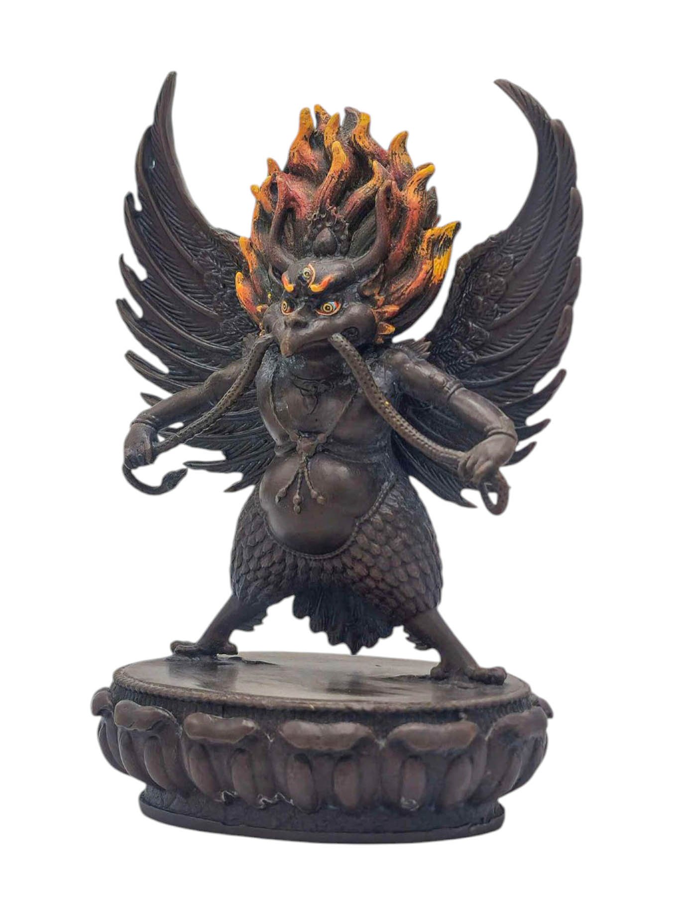 Garuda, Buddhist Miniature Statue, Chocolate Oxidized , Divine Eagle, Protector and Enemy of Evil Forces