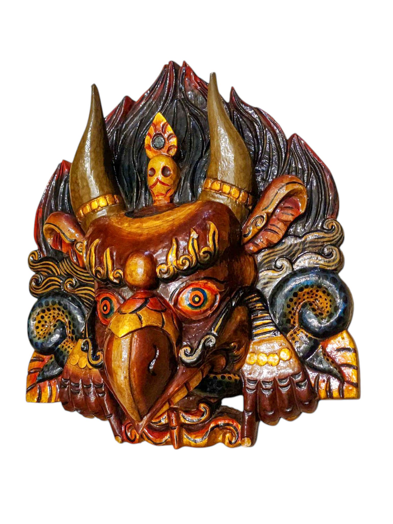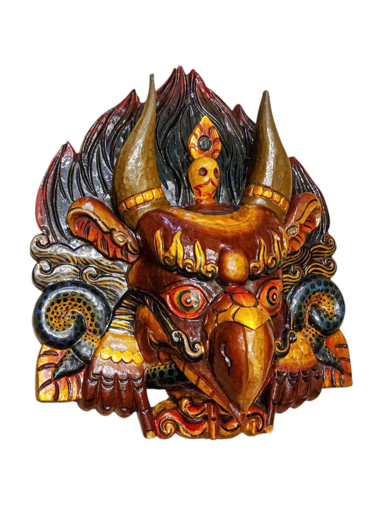 Buddhist Wooden Mask of Garuda, Tibetan Style Wtih Traditional Colors, Poplar Wood , Divine Eagle, Protector and Enemy of Evil Forces