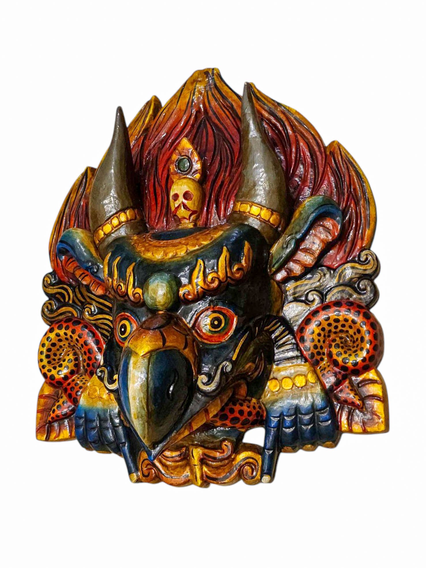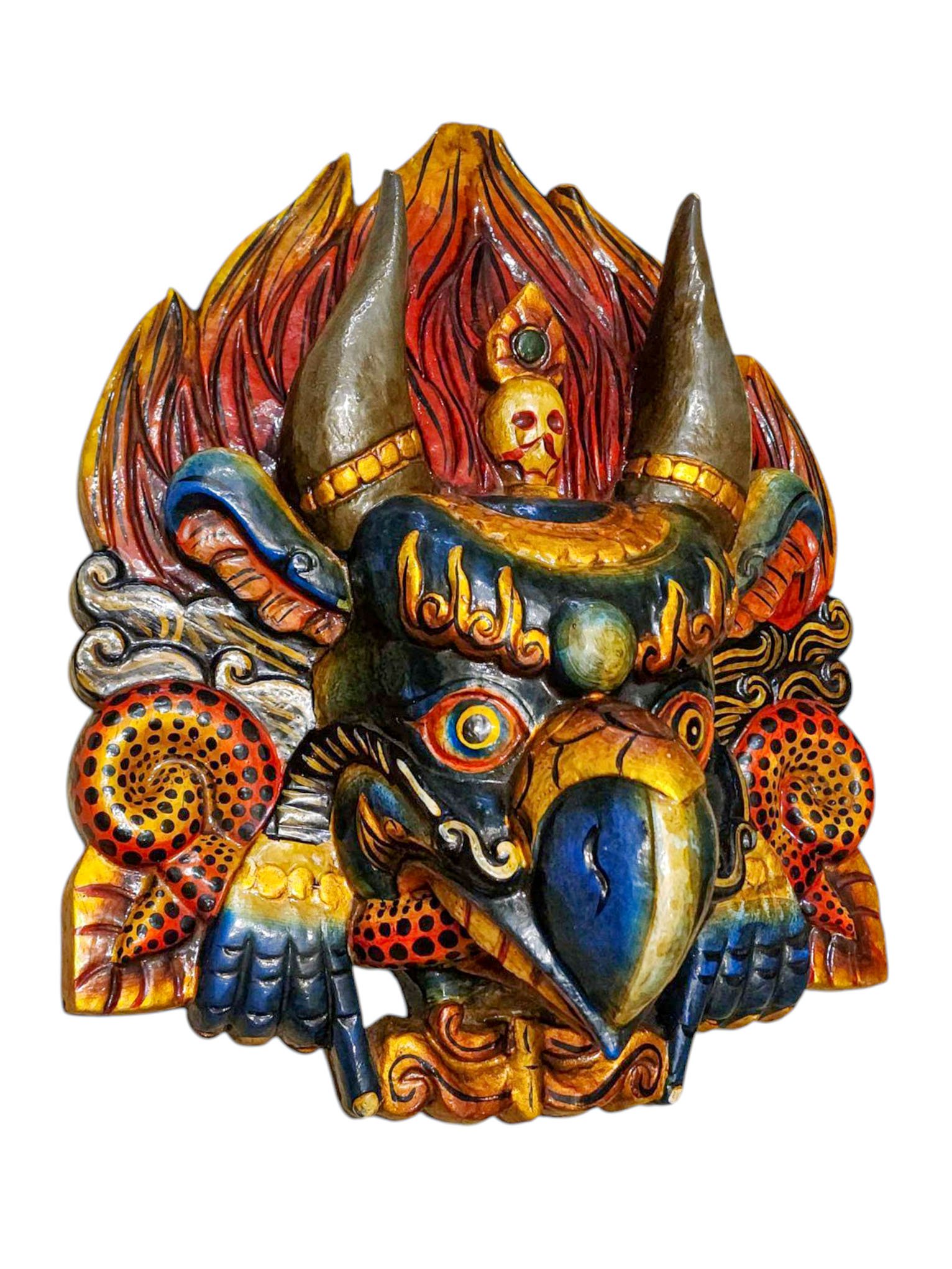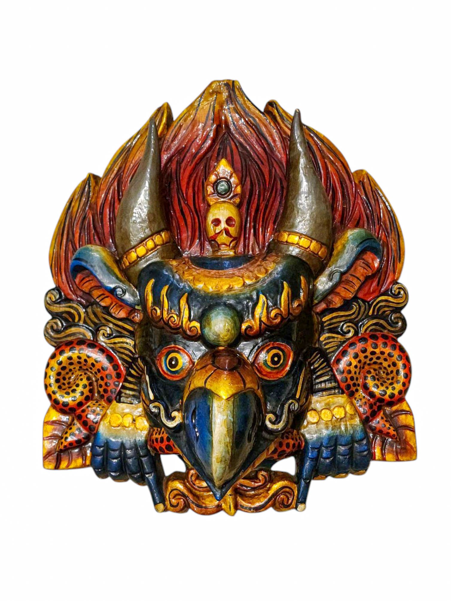 Buddhist Wooden Mask of Garuda, Tibetan Style Wtih Traditional Colors, Poplar Wood , Divine Eagle, Protector and Enemy of Evil Forces
