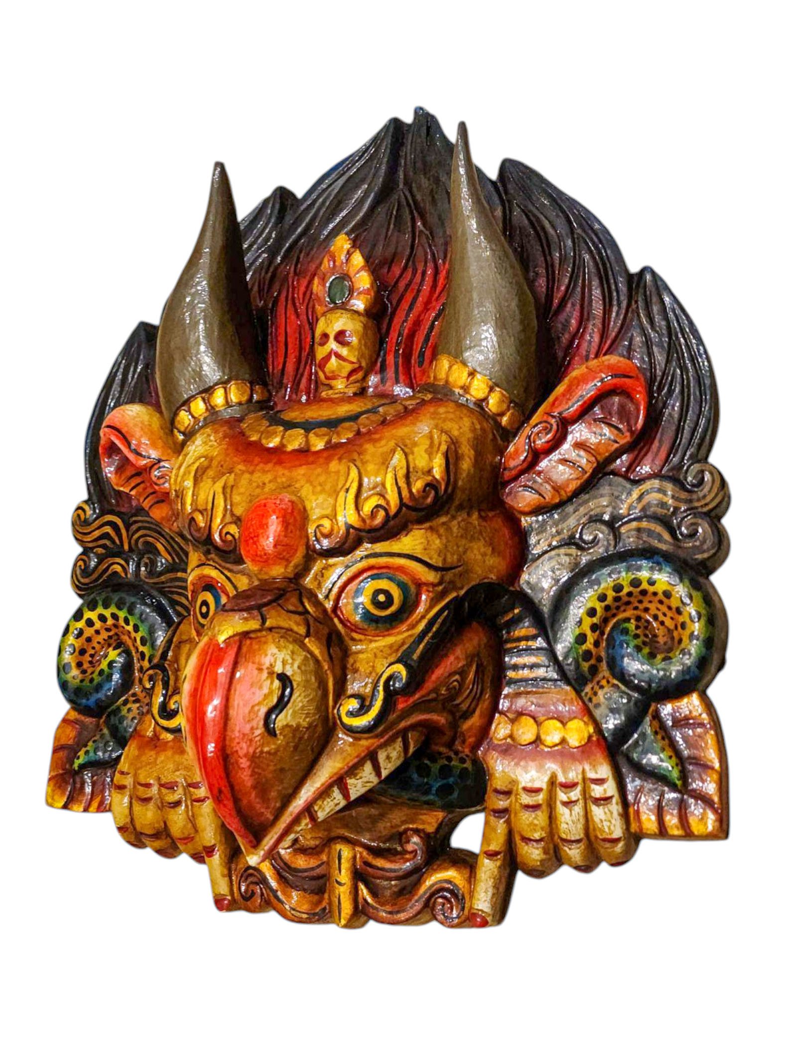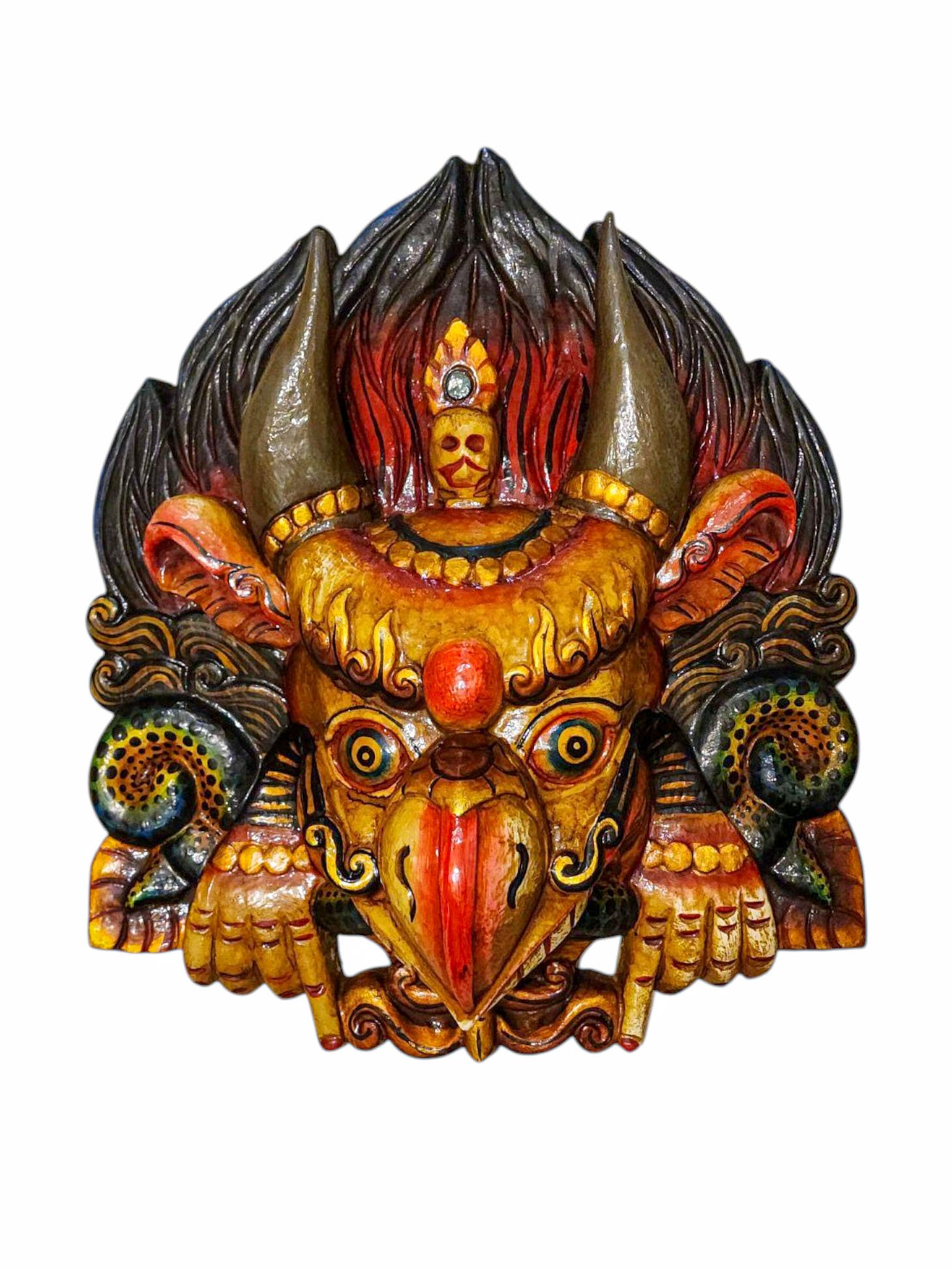 Buddhist Wooden Mask of Garuda, Tibetan Style Wtih Traditional Colors, Poplar Wood , Divine Eagle, Protector and Enemy of Evil Forces