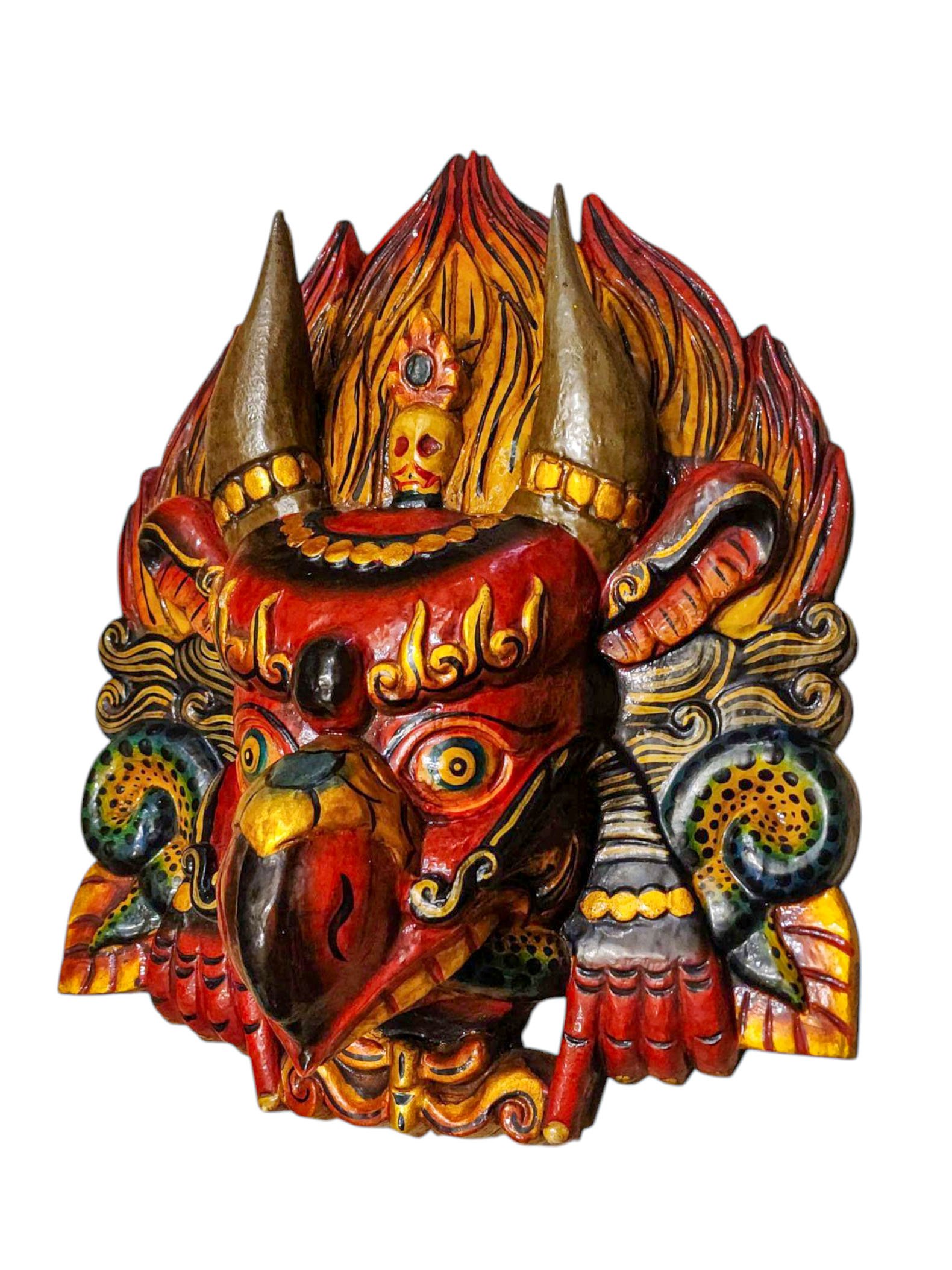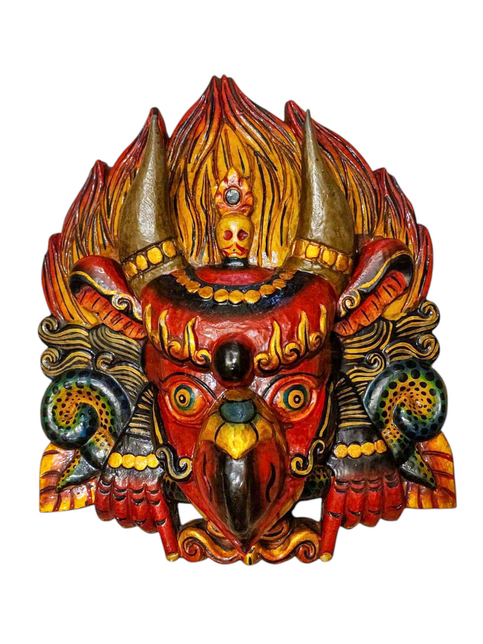 Buddhist Wooden Mask of Garuda, Tibetan Style Wtih Traditional Colors, Poplar Wood , Divine Eagle, Protector and Enemy of Evil Forces