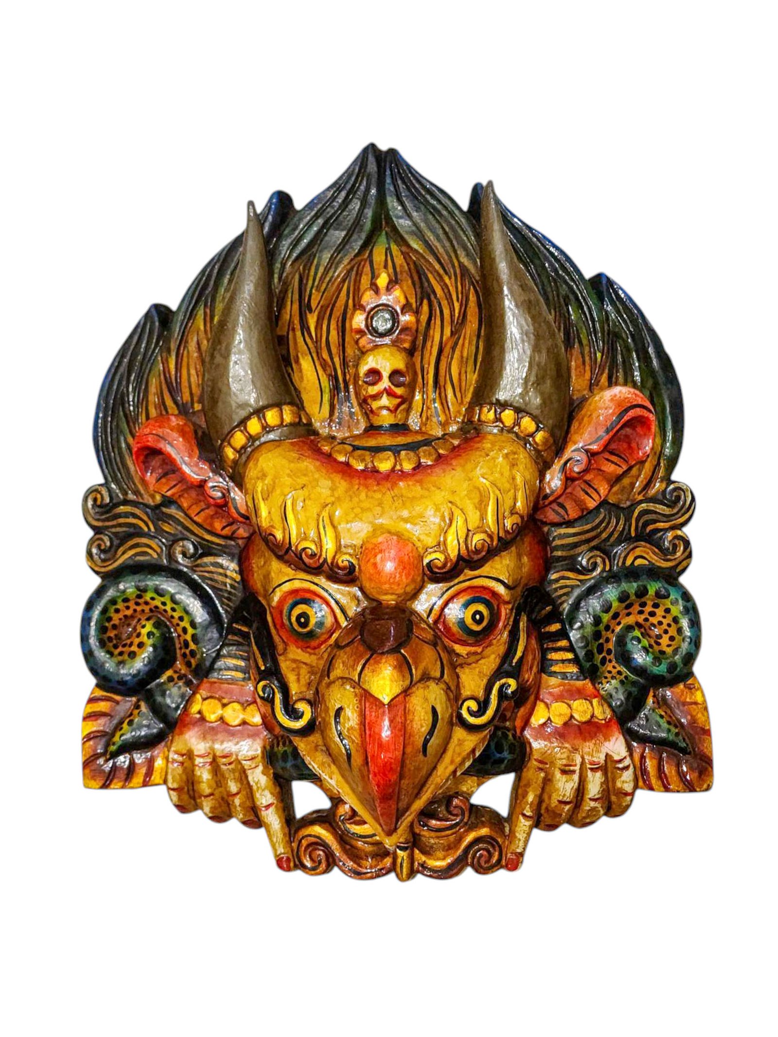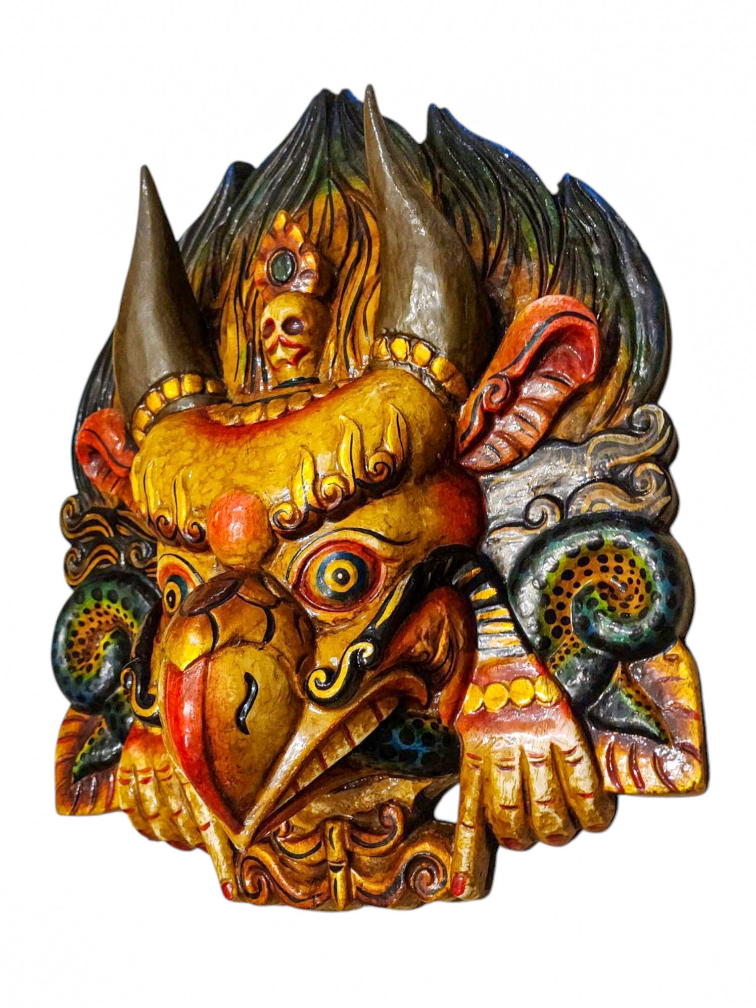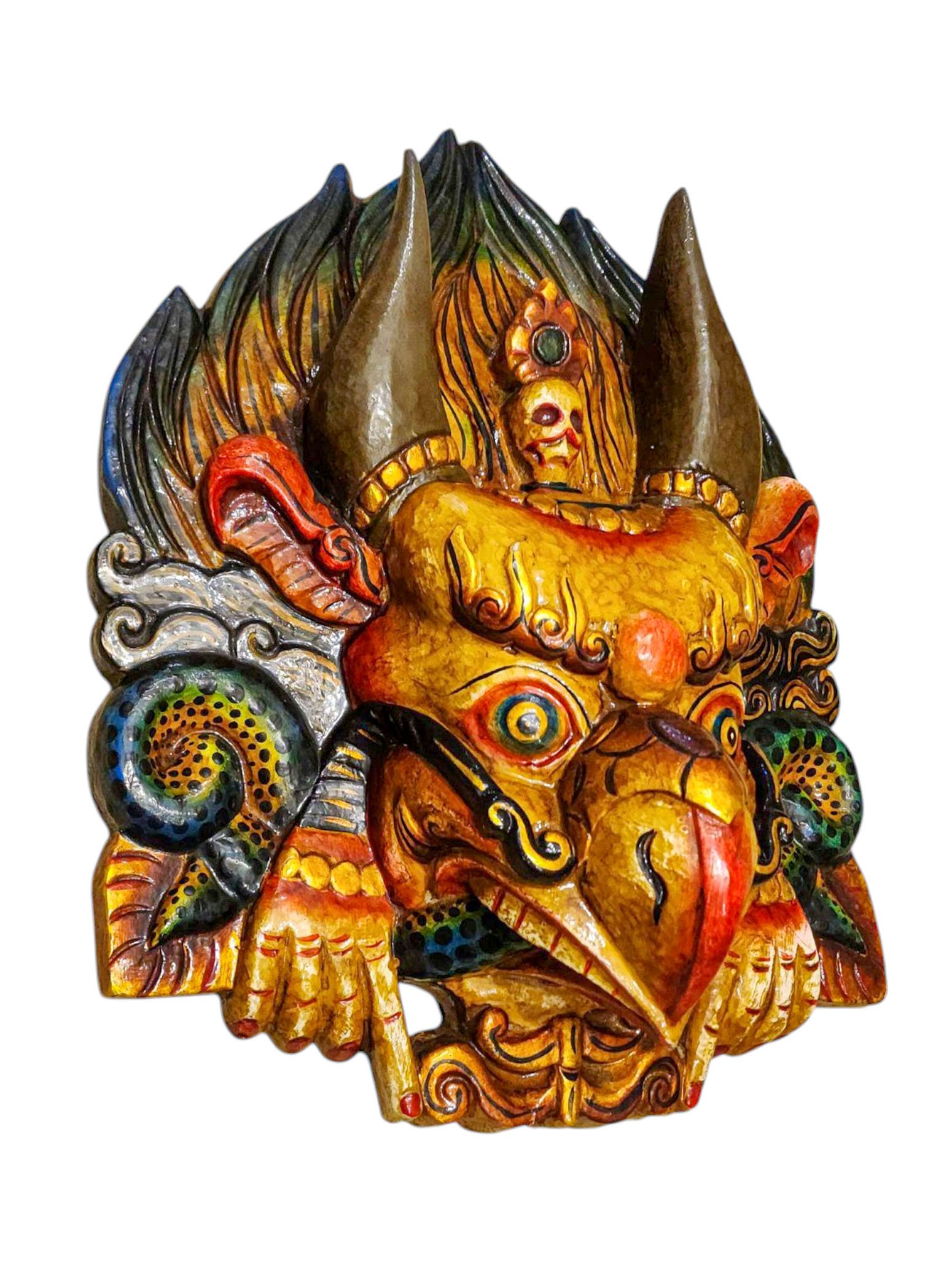 Buddhist Wooden Mask of Garuda, Tibetan Style Wtih Traditional Colors, Poplar Wood , Divine Eagle, Protector and Enemy of Evil Forces