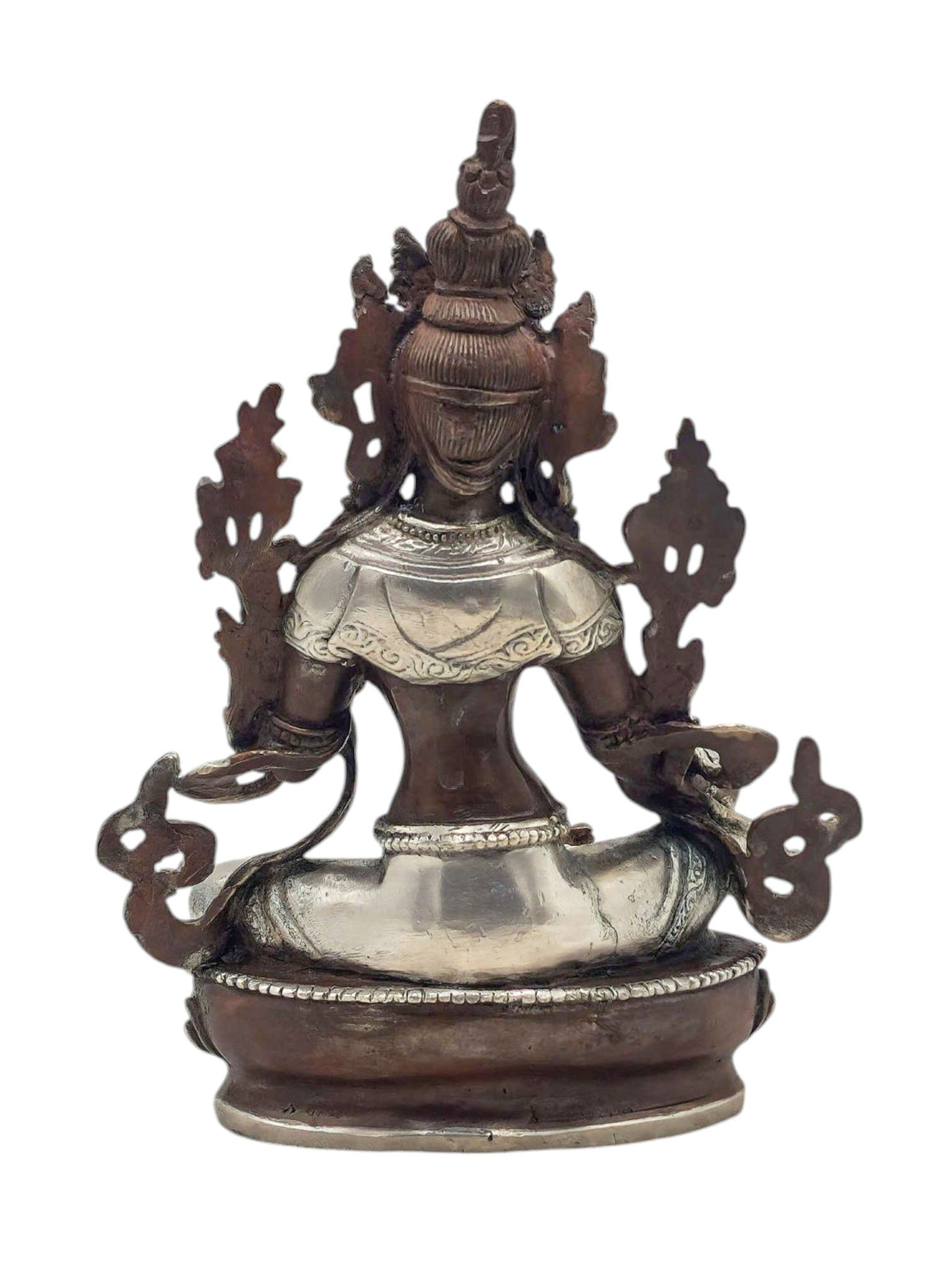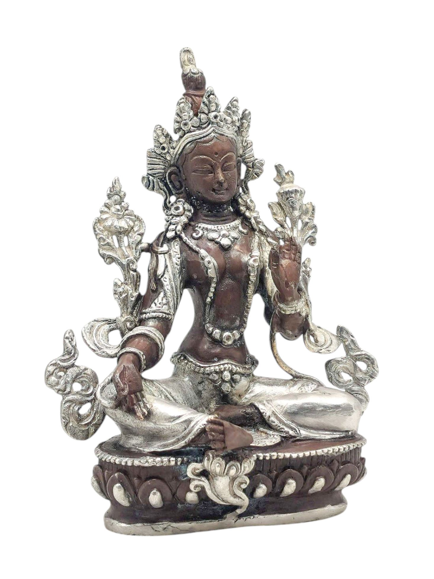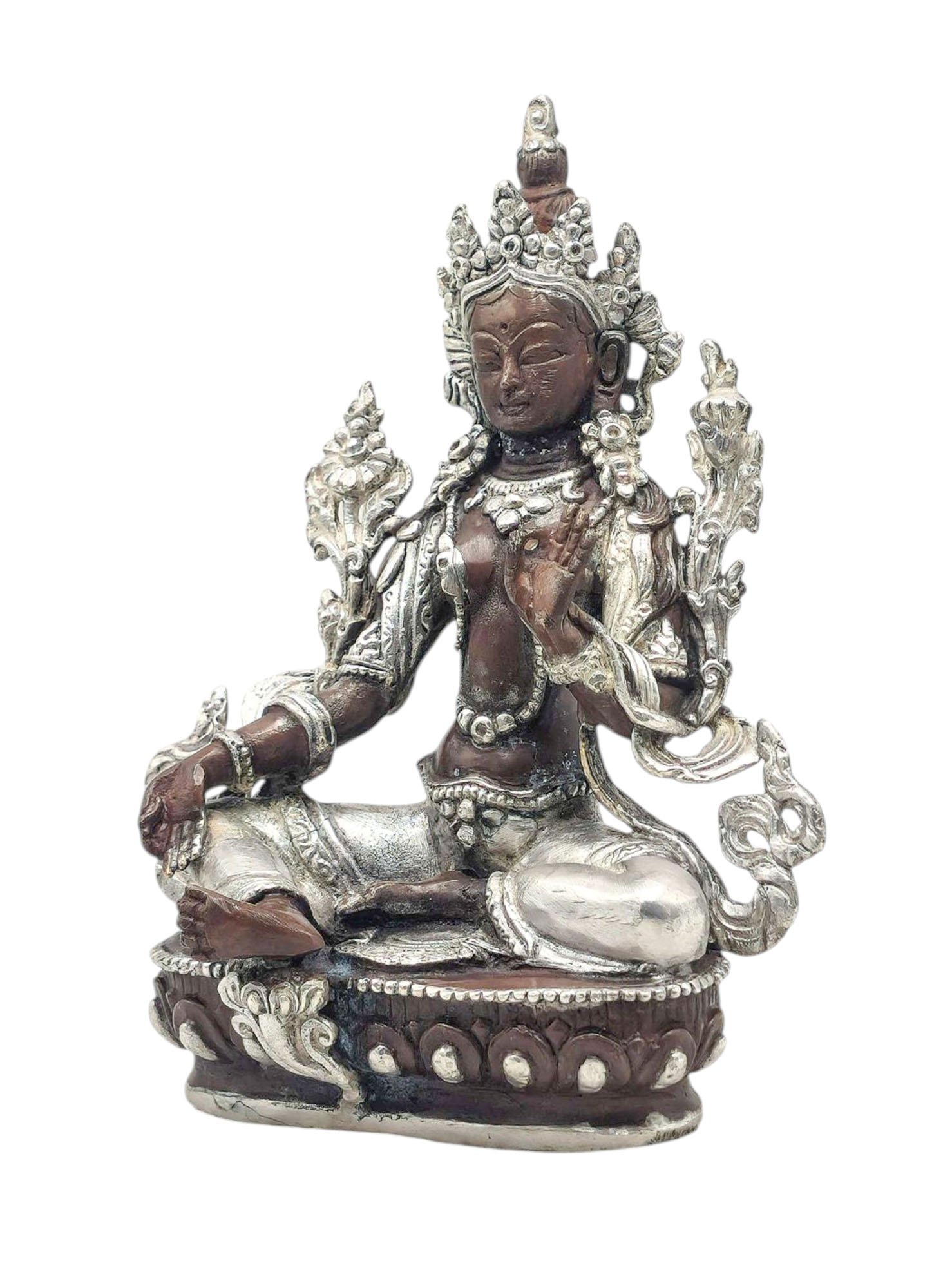 Green Tara, Buddhist Miniature Statue, Silver and Chocolate Oxidized , Goddess of Compassion, Protection, and Swift Action
