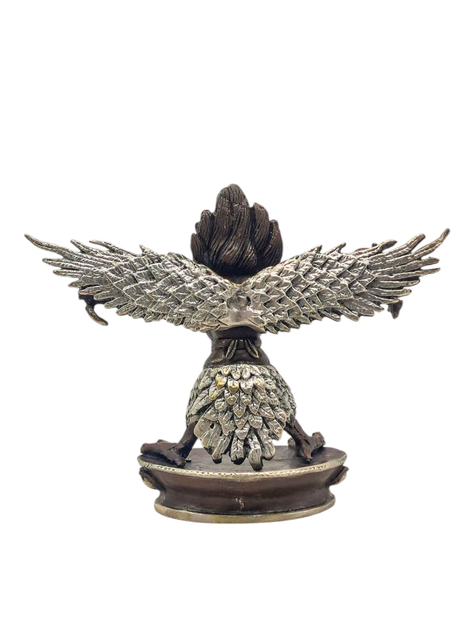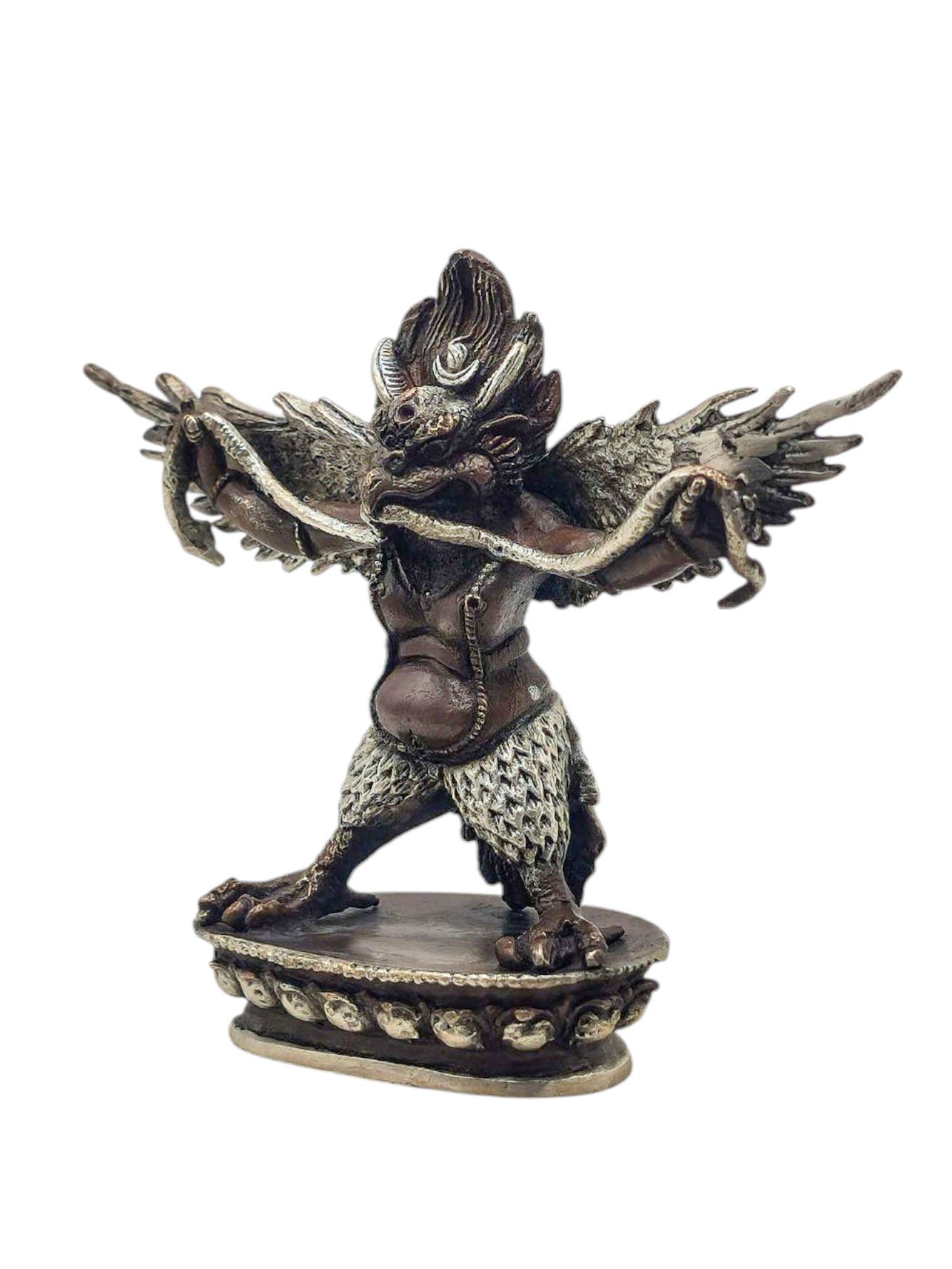 Garuda, Buddhist Miniature Statue, Silver and Chocolate Oxidized , Divine Eagle, Protector and Enemy of Evil Forces