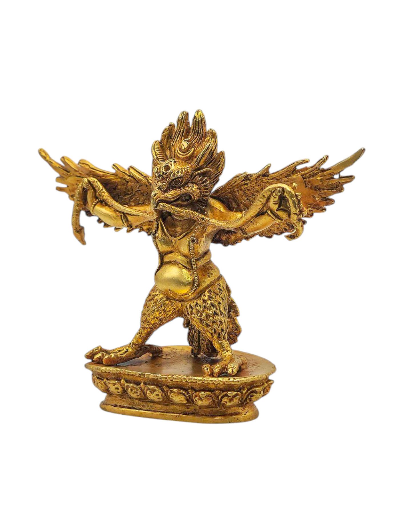 Garuda, Buddhist Miniature Statue, Full Gold Plated , Divine Eagle, Protector and Enemy of Evil Forces