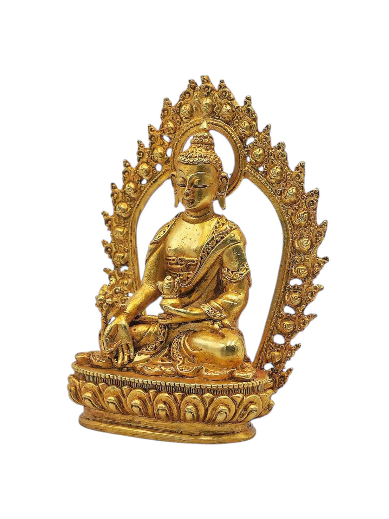Medicine Buddha, Buddhist Miniature Statue, Full Gold Plated , Healer of physical and spiritual ailments, bringer of health and peace