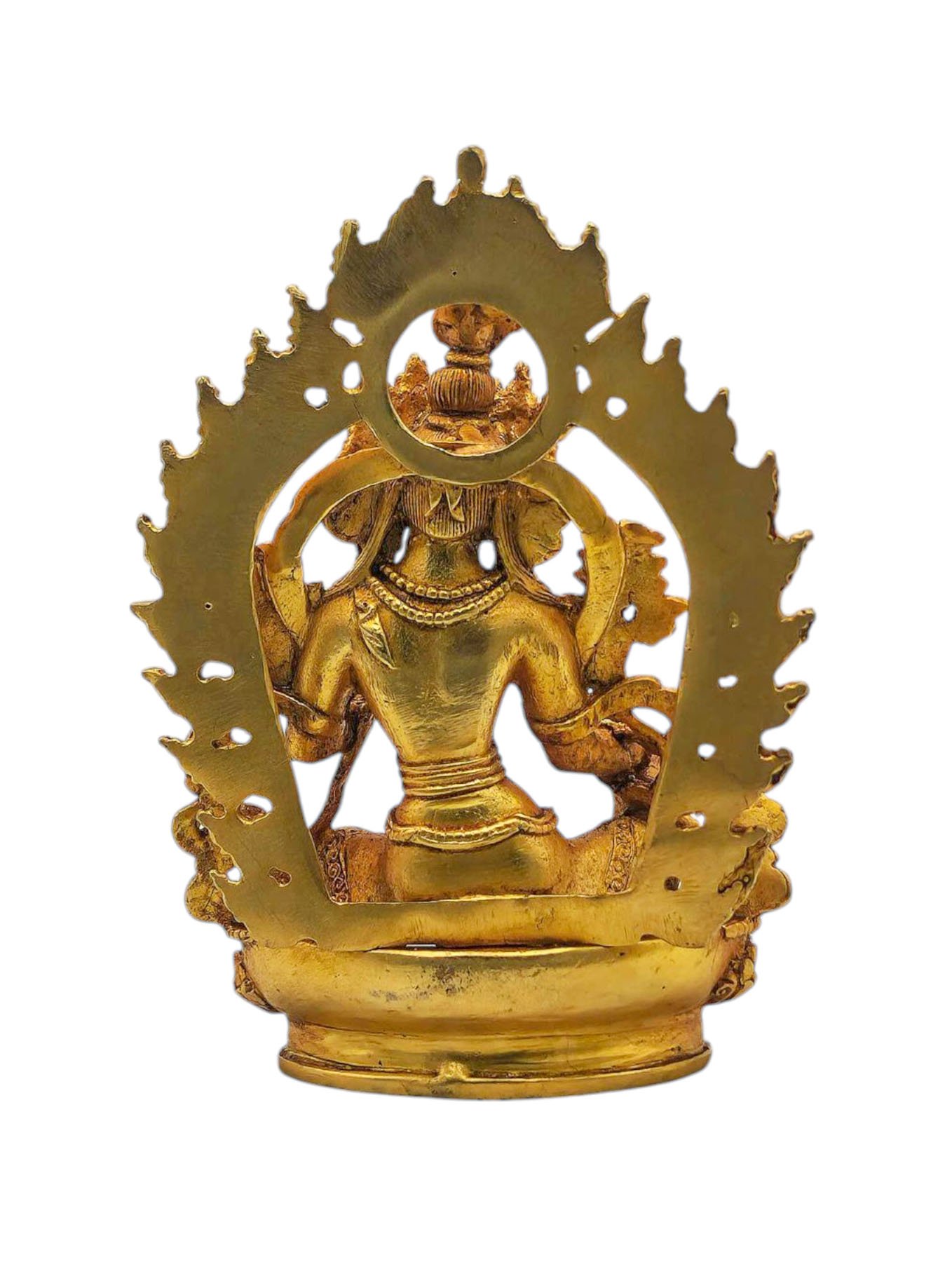 Green Tara, Buddhist Miniature Statue, Full Gold Plated , Goddess of Compassion, Protection, and Swift Action