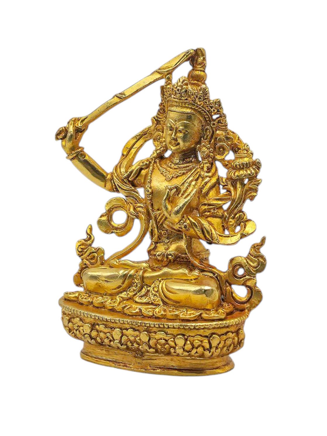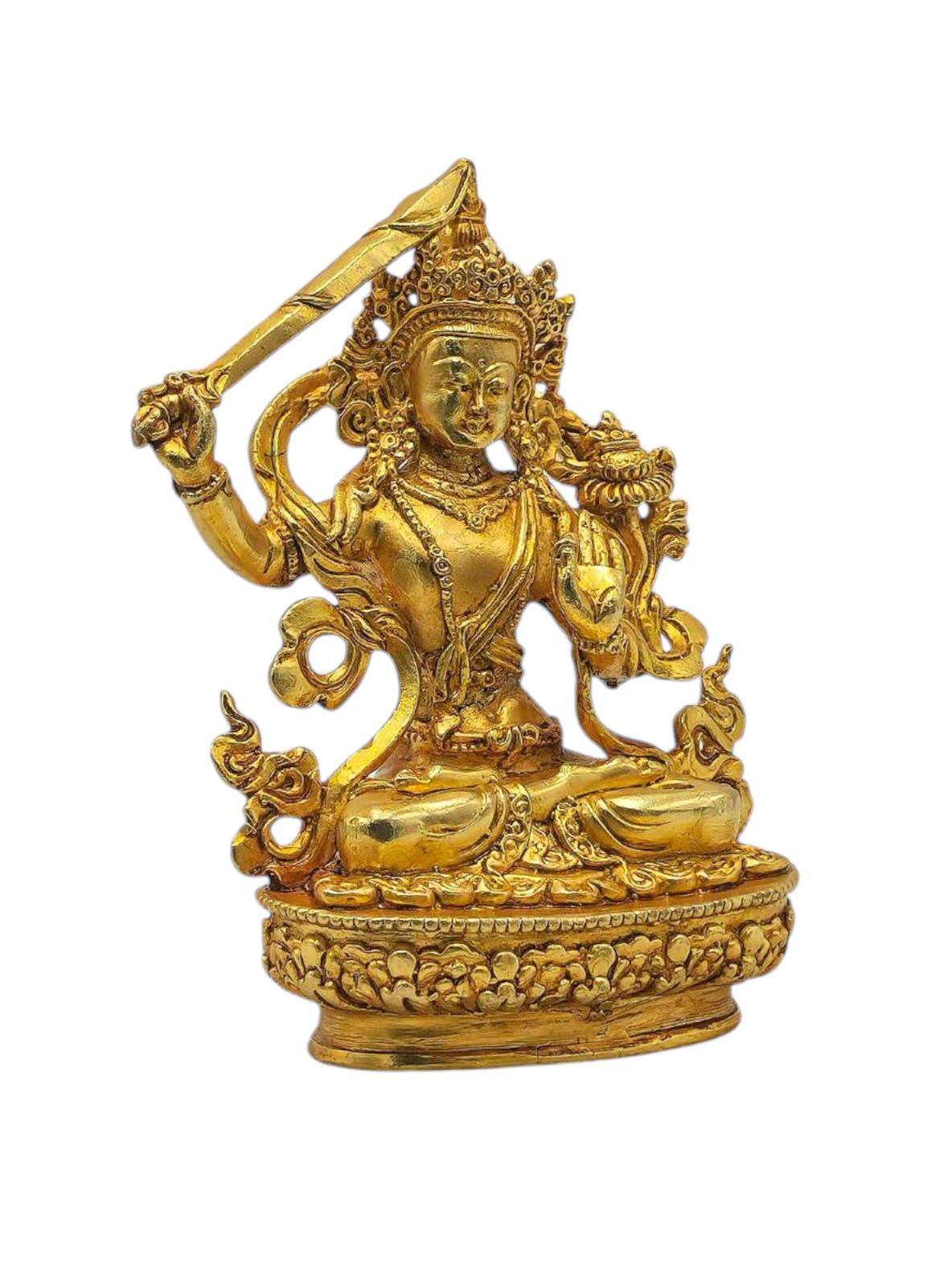 Manjushri, Buddhist Miniature Statue, Full Gold Plated , Wisdom Buddha, cutting through ignorance with the sword of insight