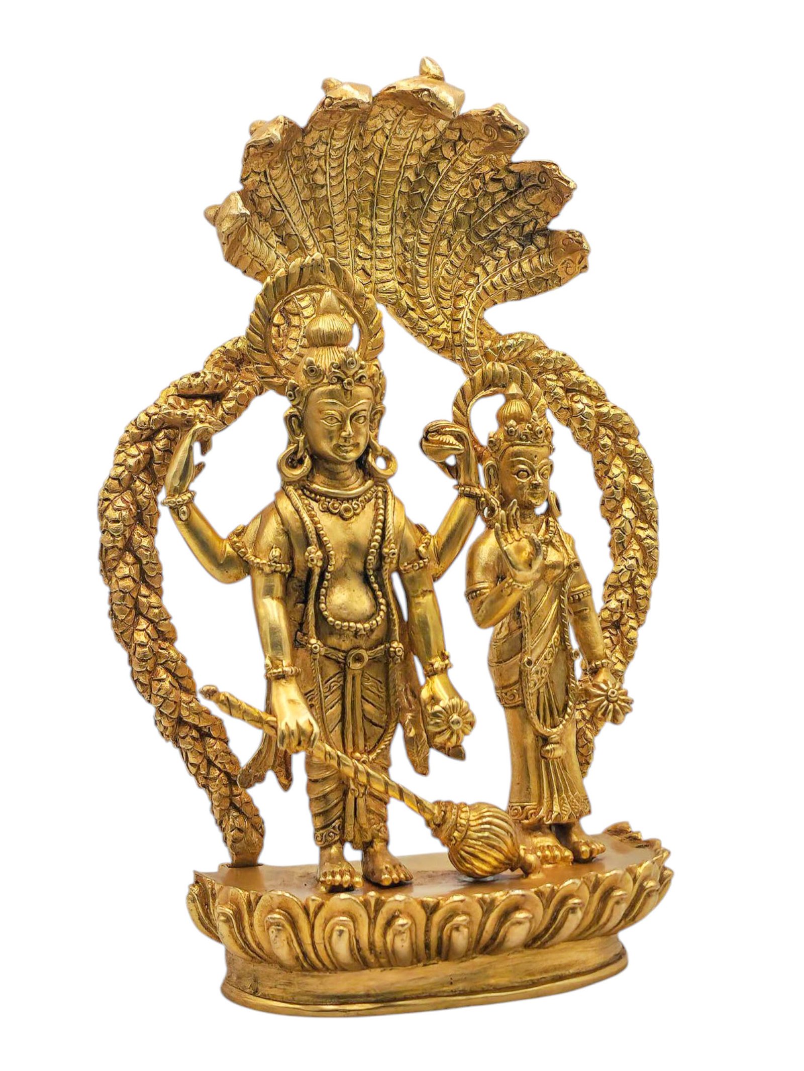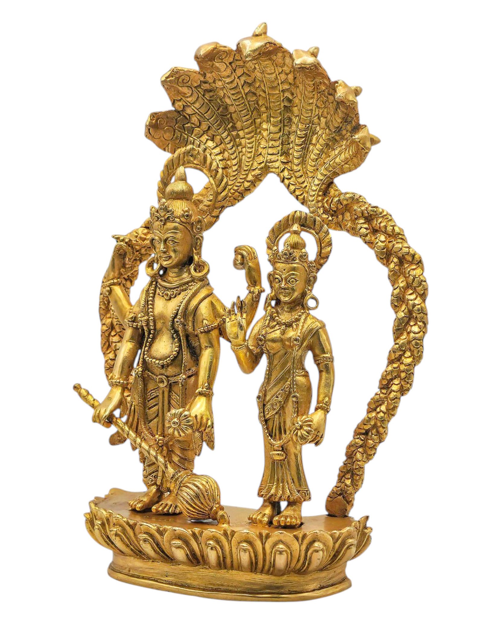 Vishnu and Lakshmi, Buddhist Miniature Statue, Full Gold Plated , The preserver deity, upholding dharma and cosmic order