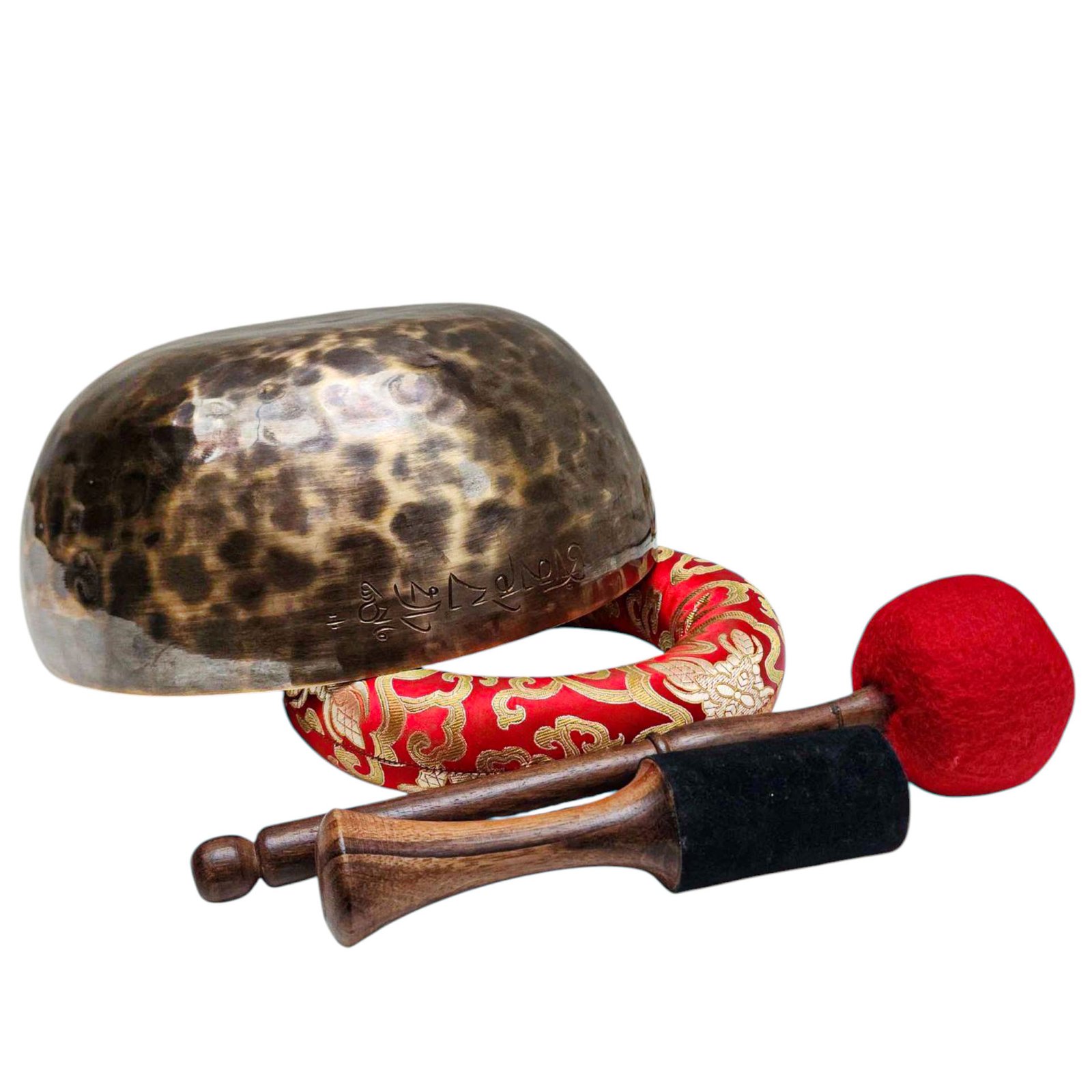 The Jambati Singing Bowl you are purchasing includes a cushion, a wooden playing mallet, and a felt-hitting mallet for playing the bowl. If you require additional accessories, you can browse the options above and purchase them separately. Should you have any further questions or need assistance, please don't hesitate to let us know. Read More