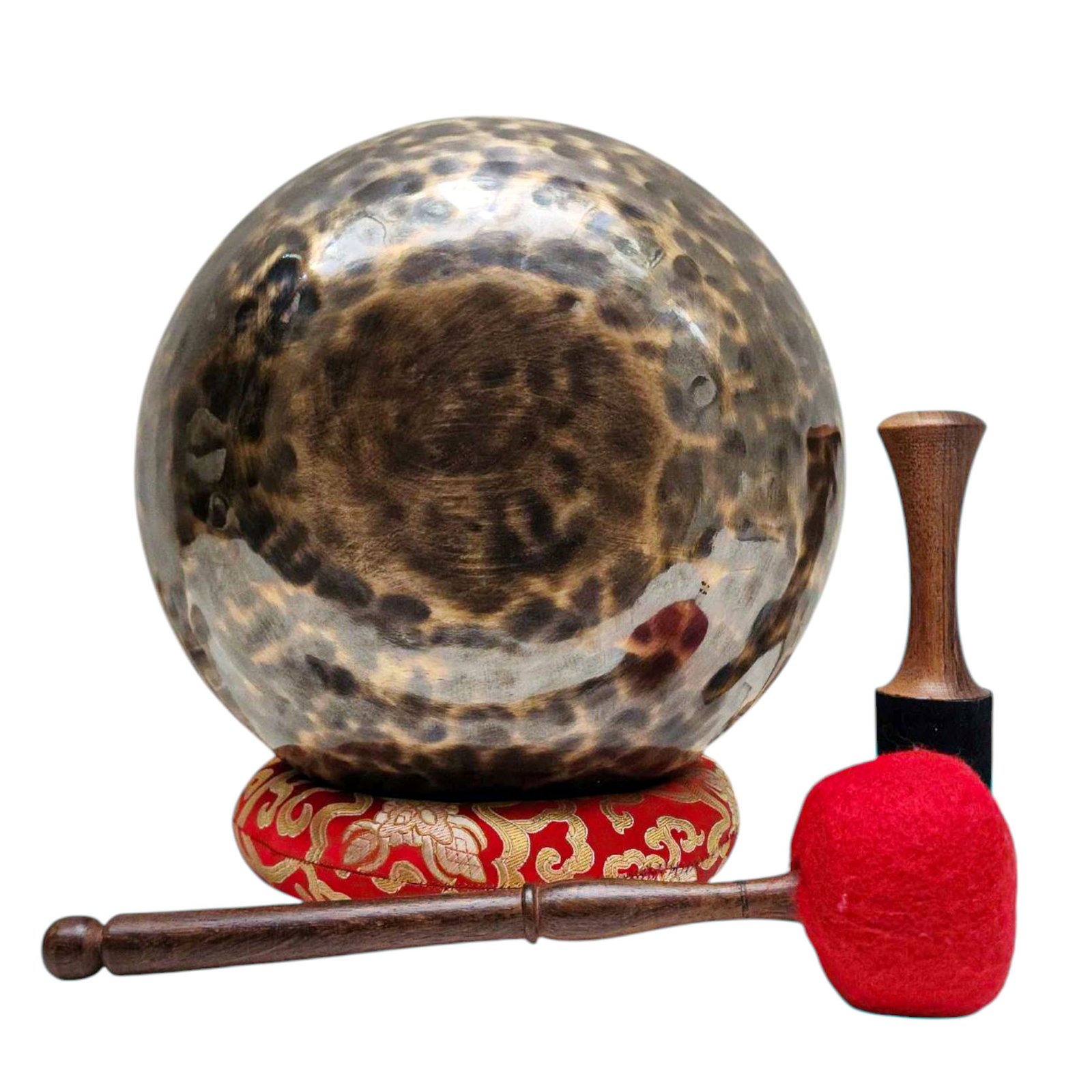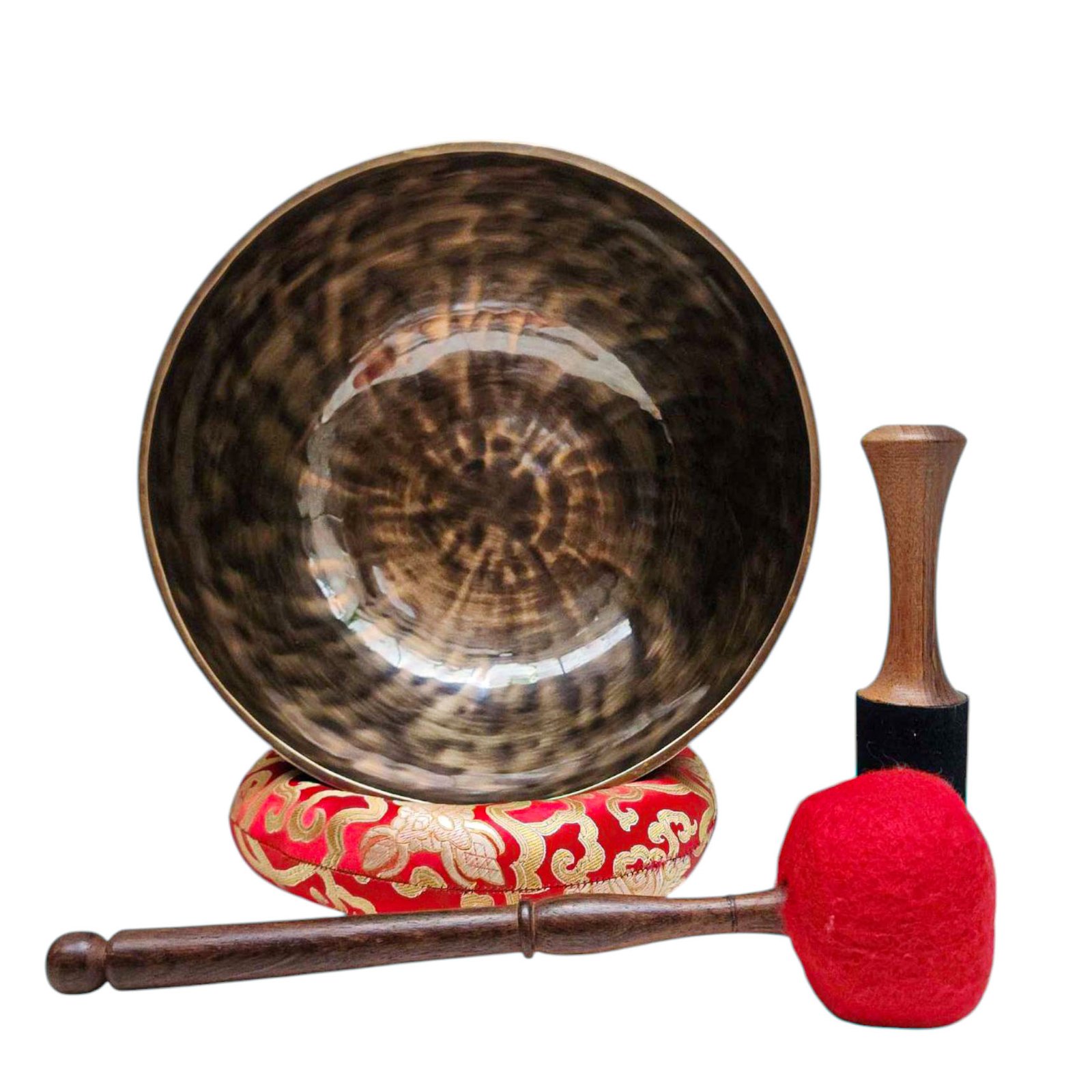 The Jambati Singing Bowl you are purchasing includes a cushion, a wooden playing mallet, and a felt-hitting mallet for playing the bowl. If you require additional accessories, you can browse the options above and purchase them separately. Should you have any further questions or need assistance, please don't hesitate to let us know. Read More