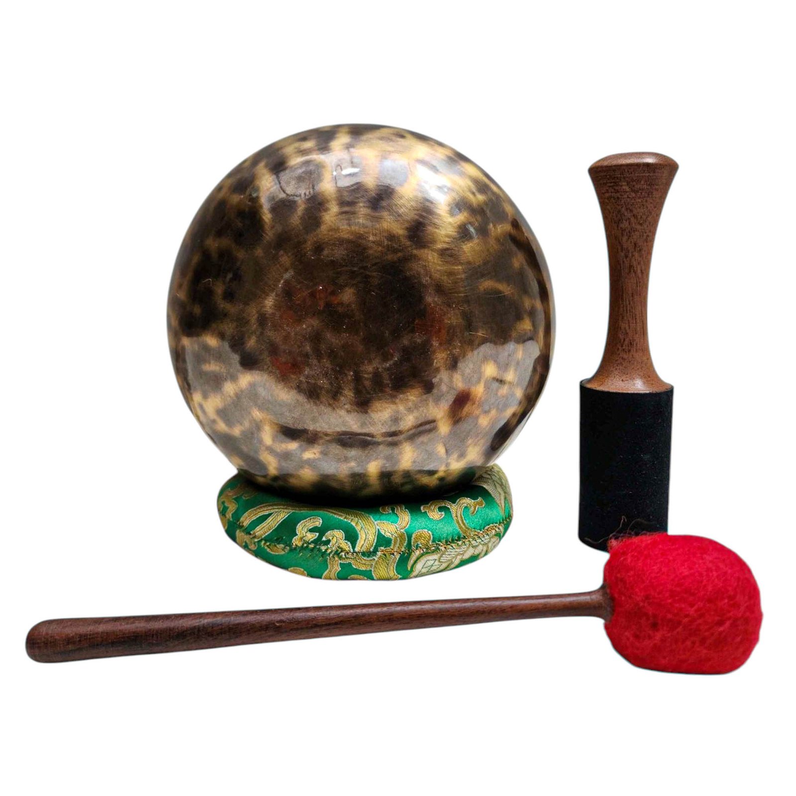 The Jambati Singing Bowl you are purchasing includes a cushion, a wooden playing mallet, and a felt-hitting mallet for playing the bowl. If you require additional accessories, you can browse the options above and purchase them separately. Should you have any further questions or need assistance, please don't hesitate to let us know. Read More