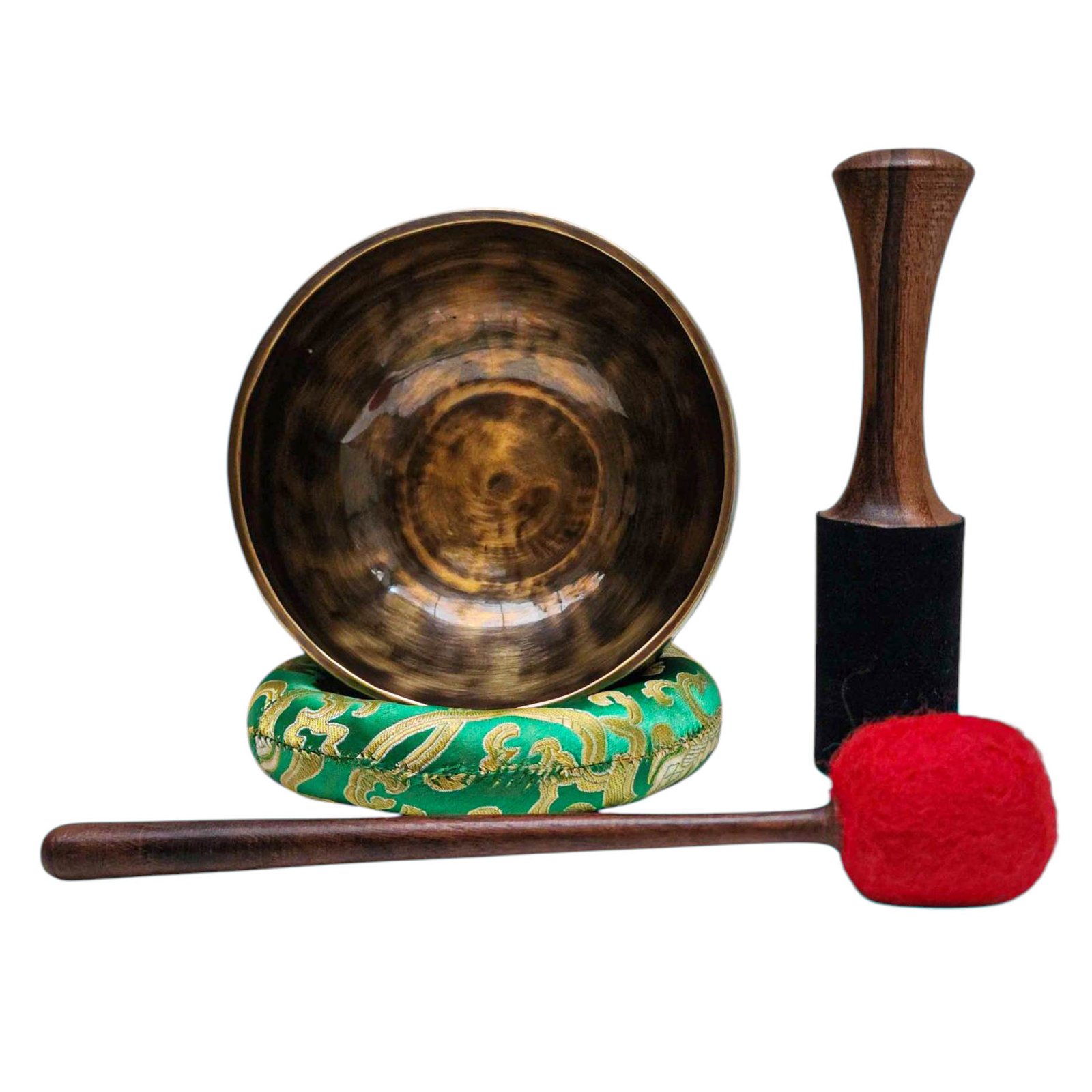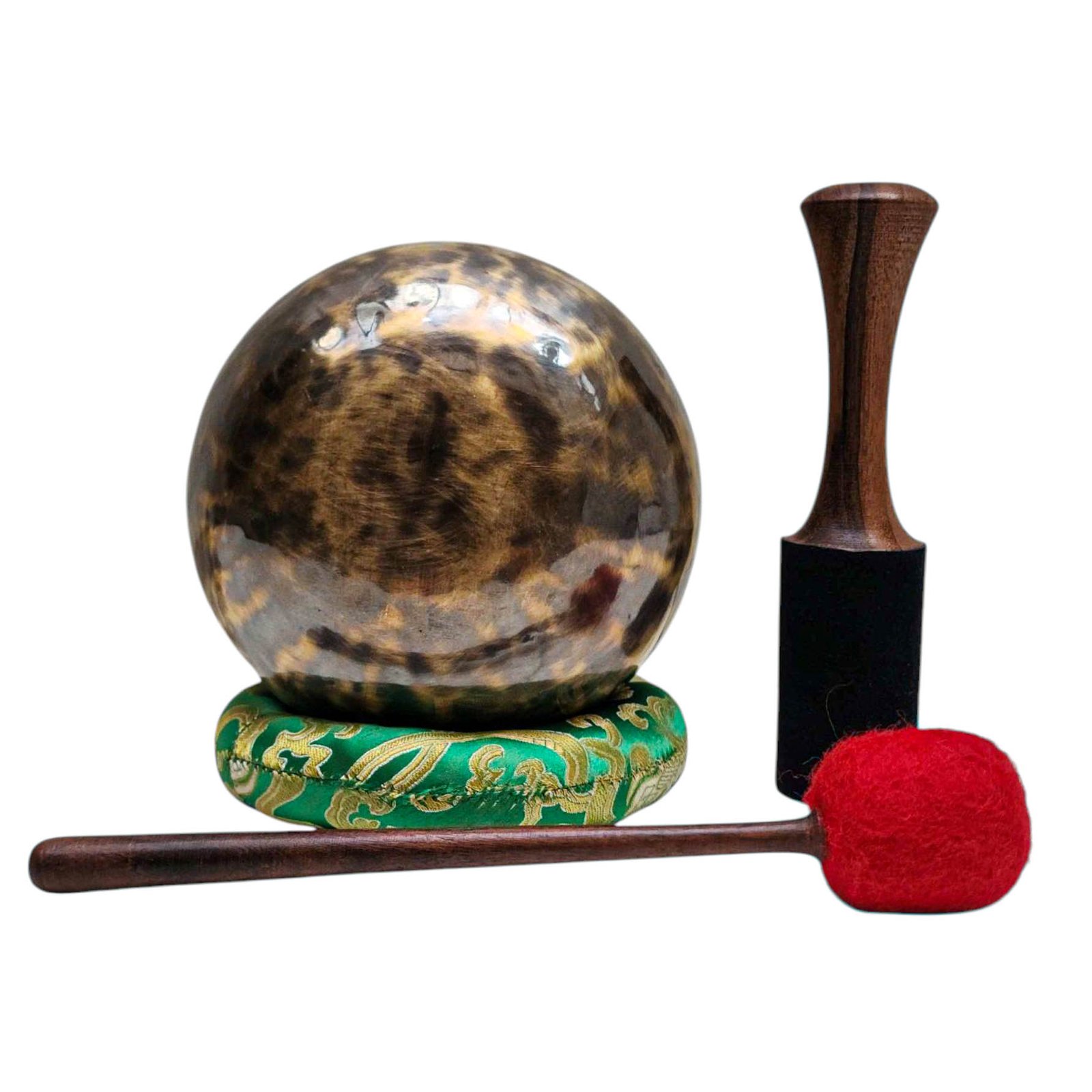 The Jambati Singing Bowl you are purchasing includes a cushion, a wooden playing mallet, and a felt-hitting mallet for playing the bowl. If you require additional accessories, you can browse the options above and purchase them separately. Should you have any further questions or need assistance, please don't hesitate to let us know. Read More