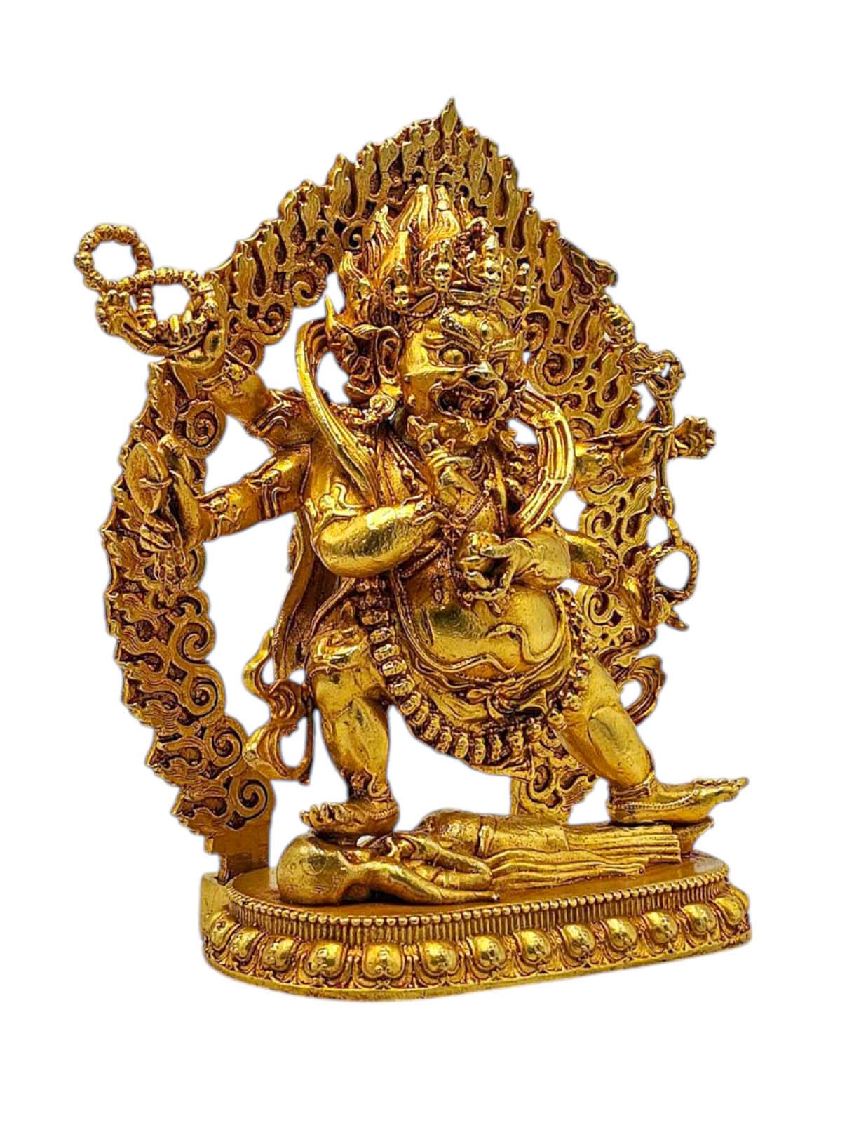 Six Arm Mahakala. Buddhist Miniature Statue, Full Gold Plated |