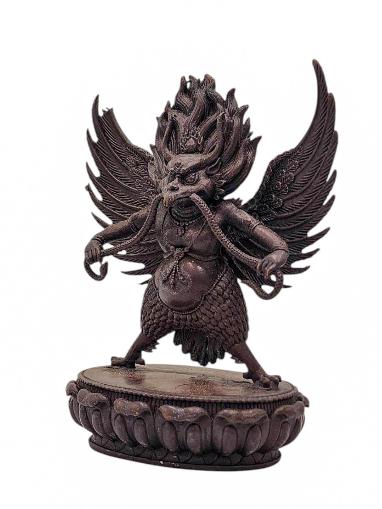 Garuda, Buddhist Miniature Statue, Chocolate Oxidized , Divine Eagle, Protector and Enemy of Evil Forces